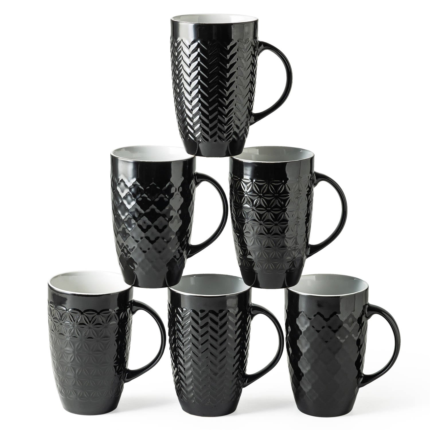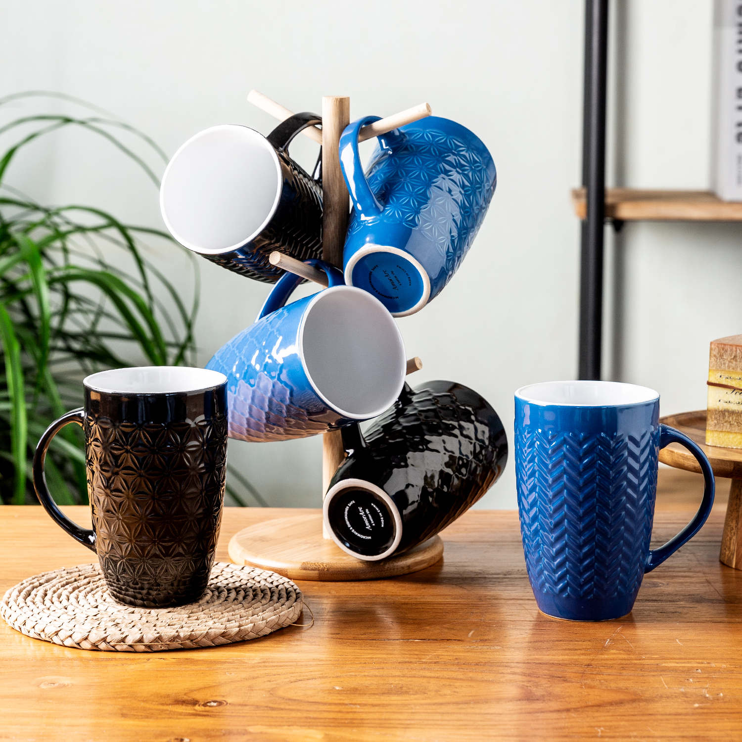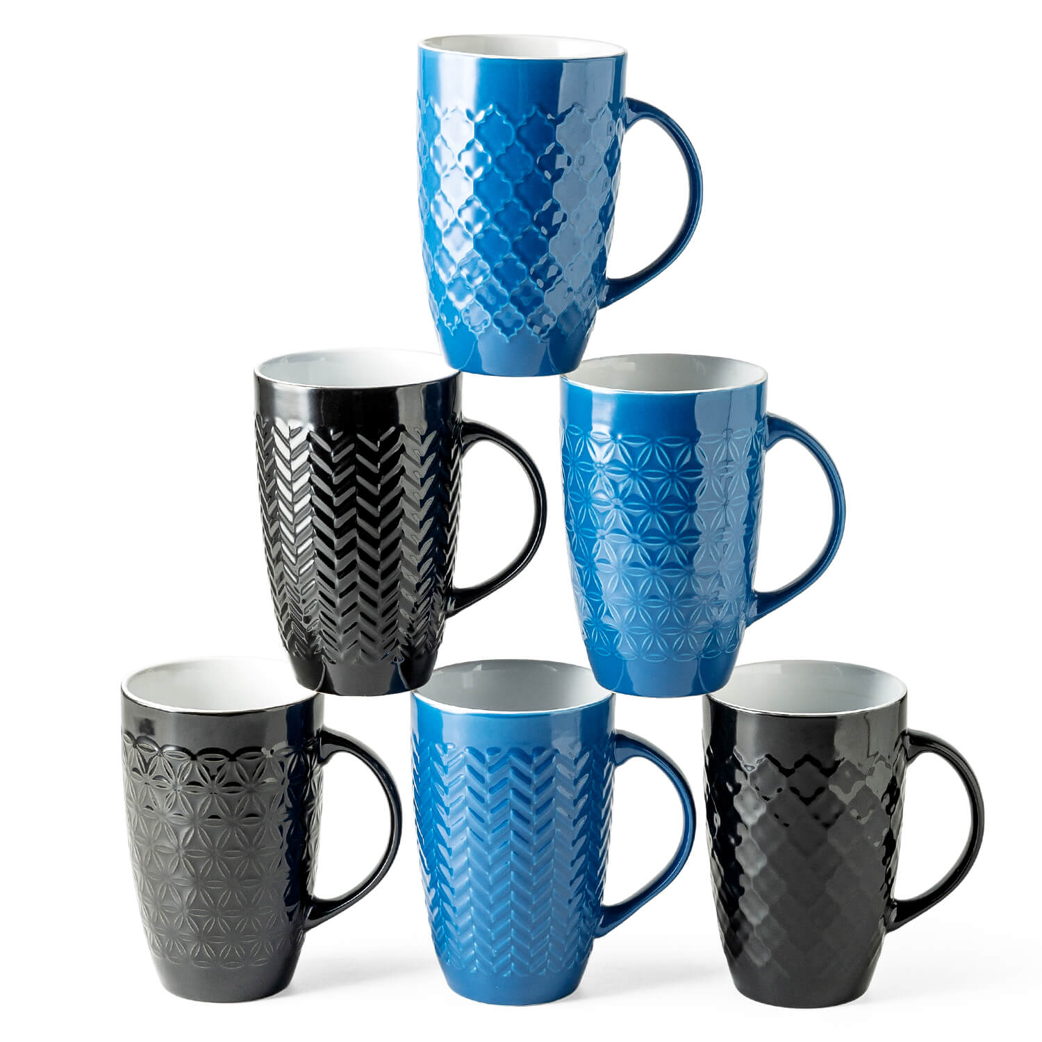 Large Coffee Mugs Set of 6, 22oz Ceramic Tall Coffee Mugs Set with Textured Geometric Patterns for Latte/Tea/Beer/Hot Cocoa, Dishwasher & Microwave Safe, Blue