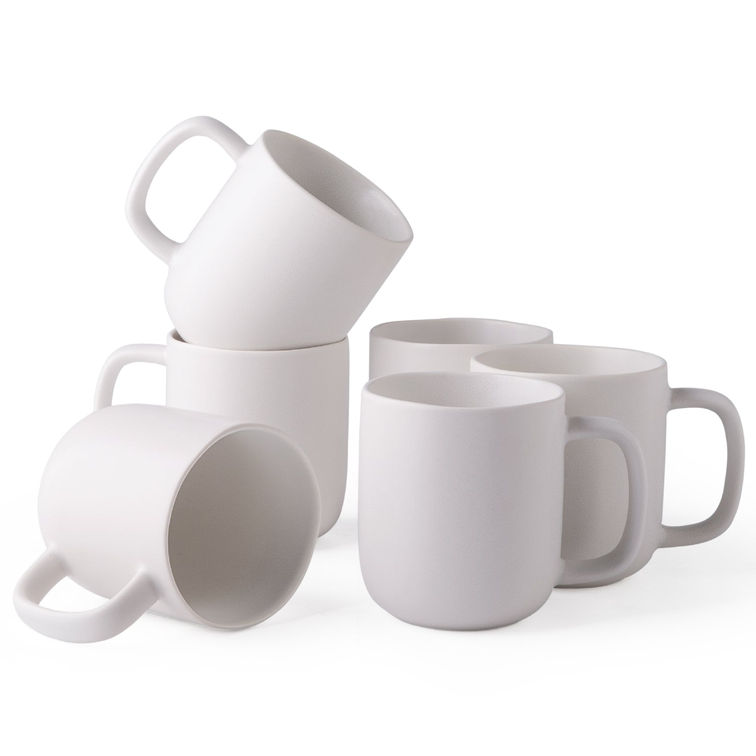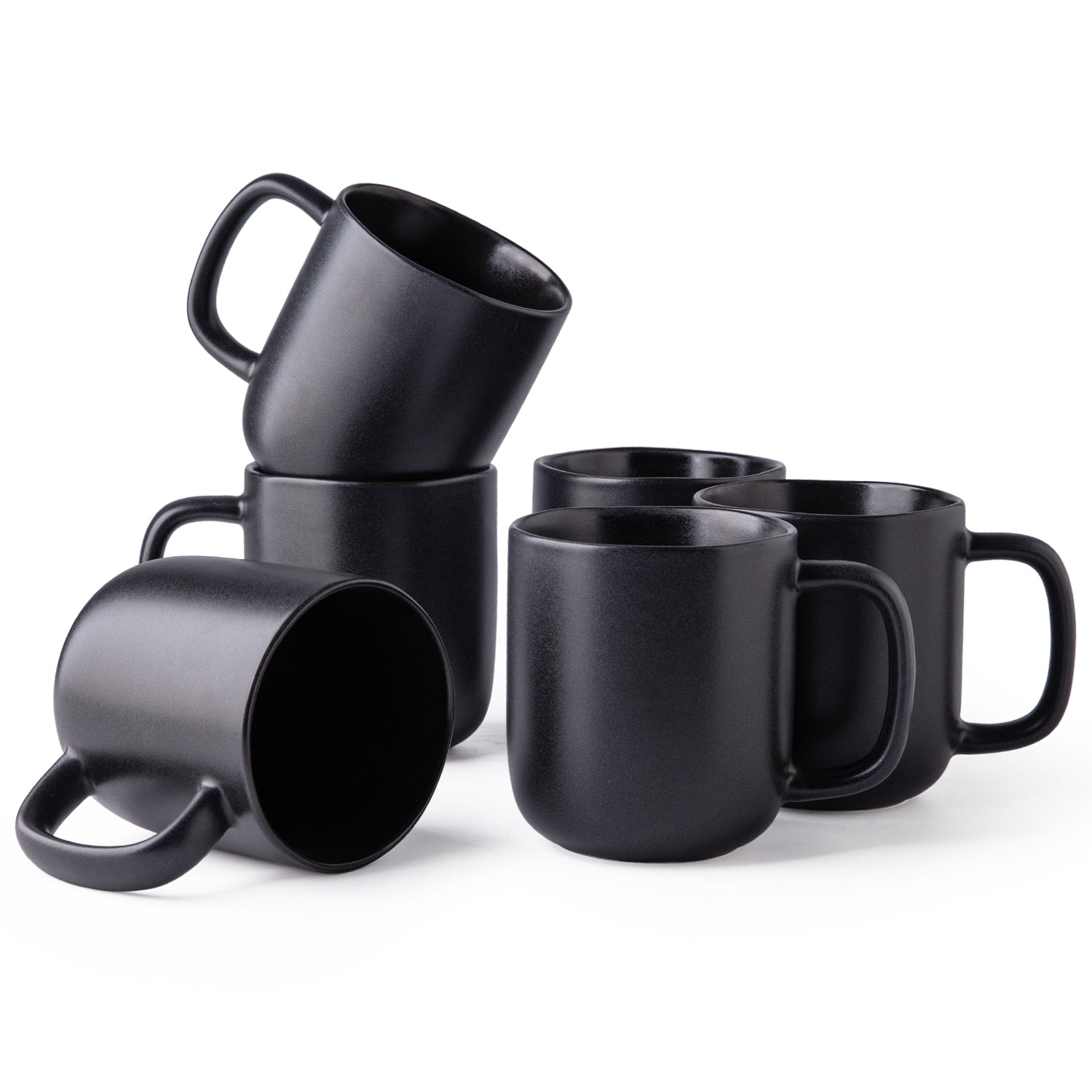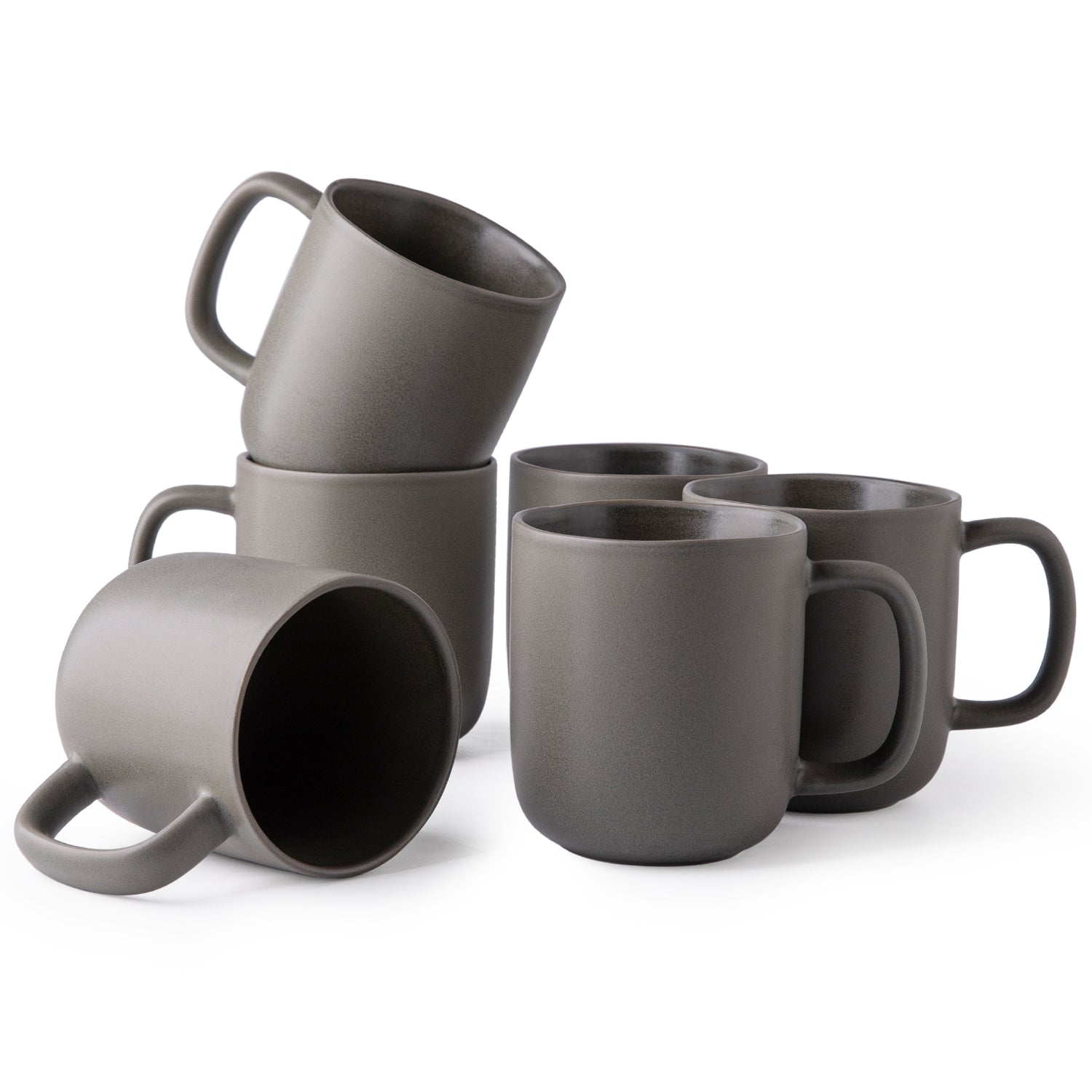 14oz Coffee Mugs Set of 6, Ceramic Coffee Mugs with Large Handle & Wavy Rim for Latte/Hot Cocoa/Tea, Stylish Coffee Mugs for Men Women. Dishwasher&Microwave Safe, Matte Grey Black White