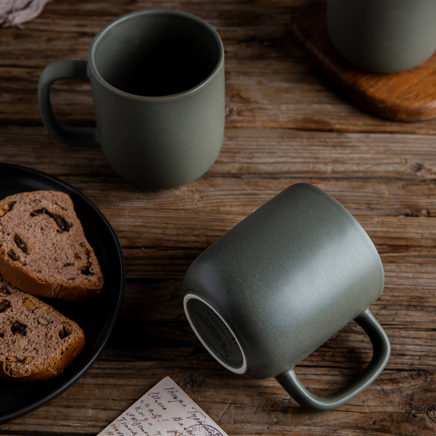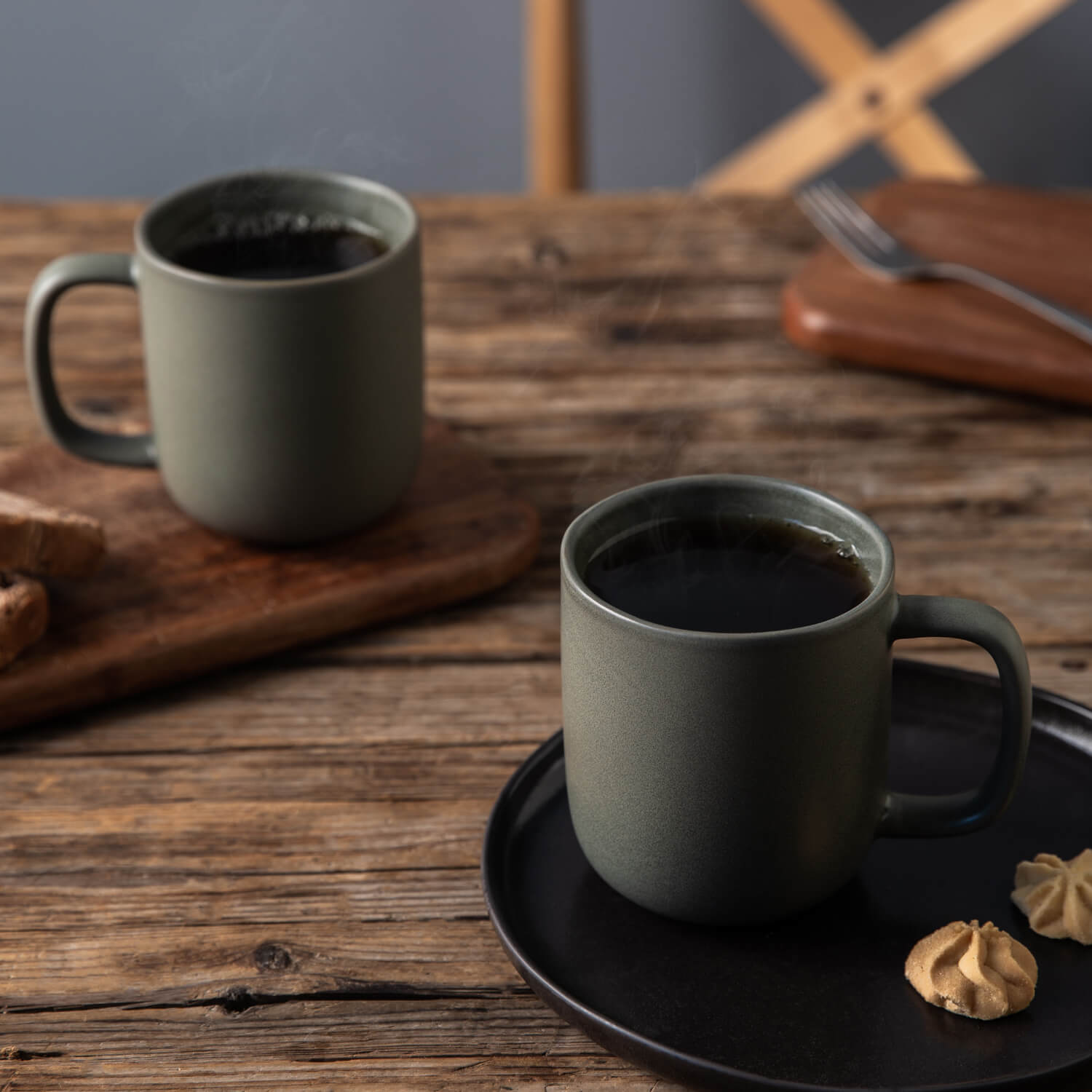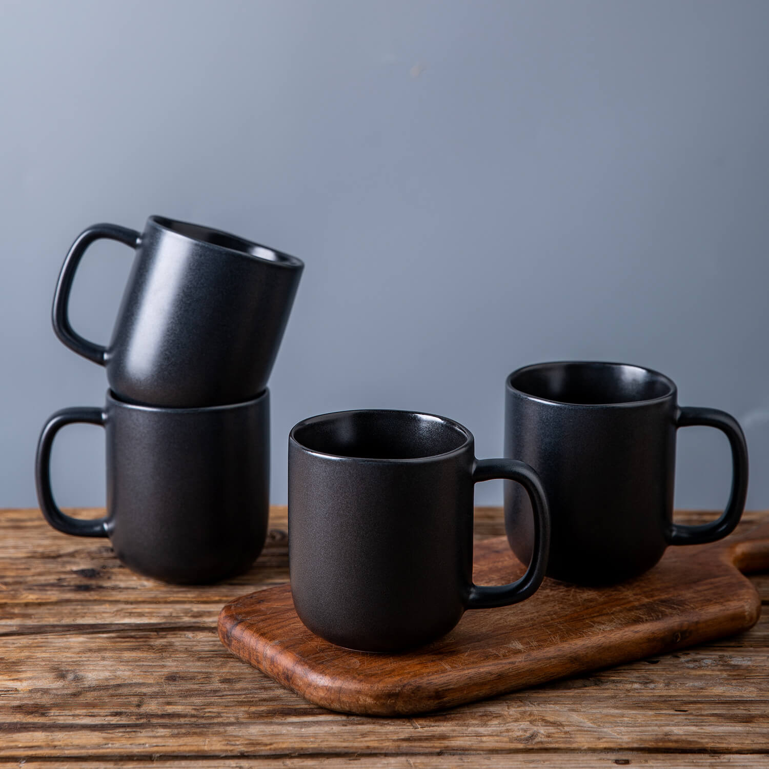 14oz Coffee Mugs Set of 6, Ceramic Coffee Mugs with Large Handle & Wavy Rim for Latte/Hot Cocoa/Tea, Stylish Coffee Mugs for Men Women. Dishwasher&Microwave Safe, Matte Grey Black White