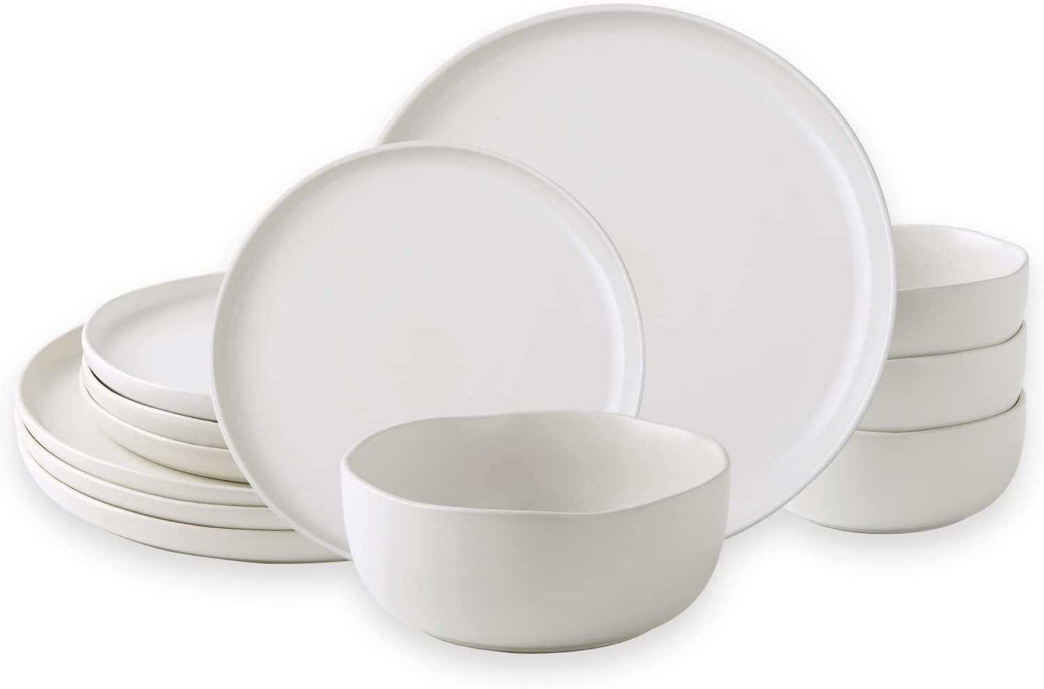 AmorArc Ceramic Dinnerware Sets, Wavy Rim Stoneware Plates and Bowls Sets, Highly Chip and Crack Resistant | Dishwasher & Microwave & Oven Safe Dishes set, Service for 4 (12pc)