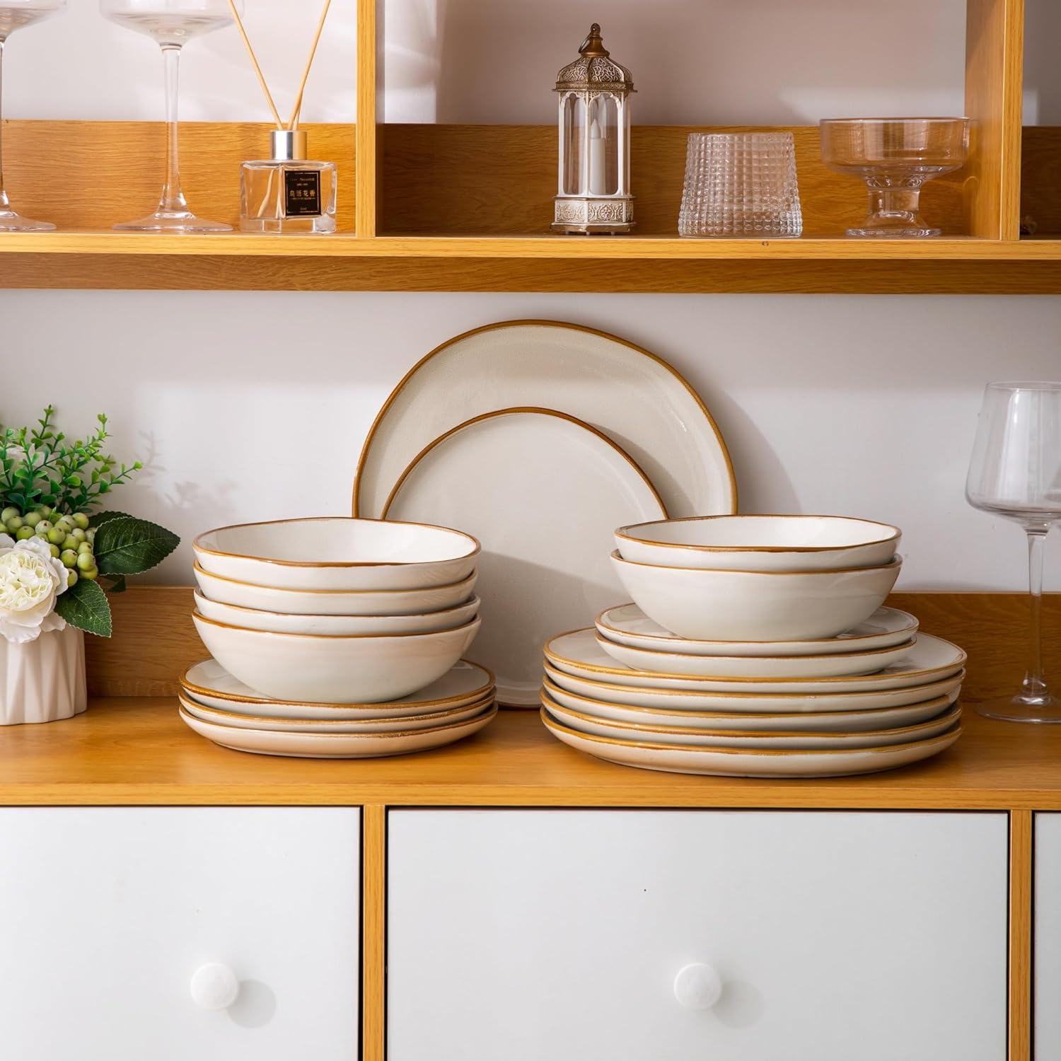 AmorArc Ceramic Dinnerware Sets,Handmade Reactive Glaze Plates and Bowls Sets,Highly Chip and Crack Resistant | Dishwasher & Microwave Safe Dishes Set,Service for 4 (12pc)