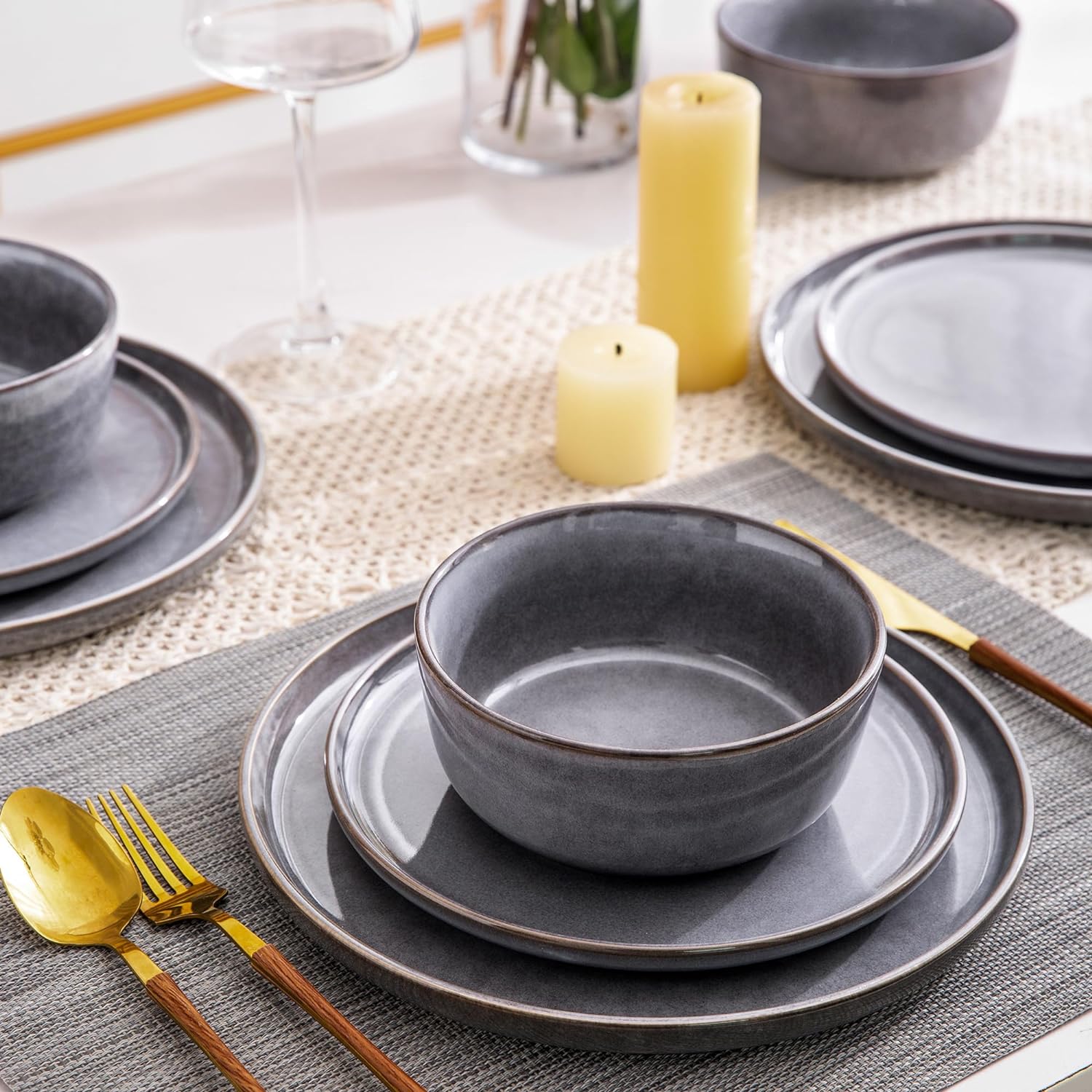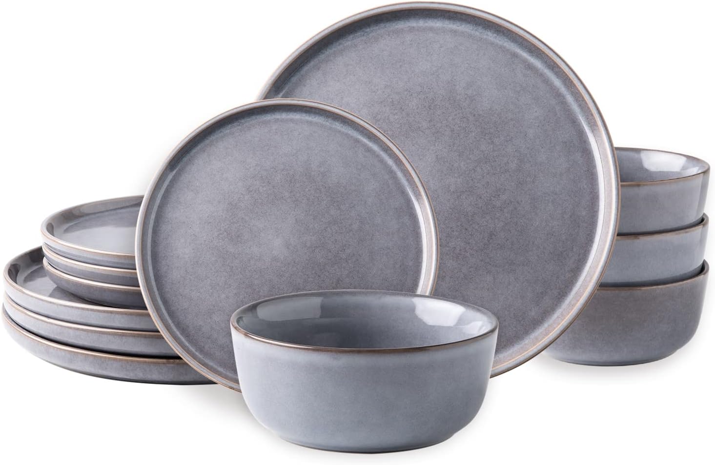 AmorArc Stoneware Dinnerware Sets,Round Reactive Glaze Plates and Bowls Set,Highly Chip and Crack Resistant | Dishwasher & Microwave Safe,Service for 4 (12pc)