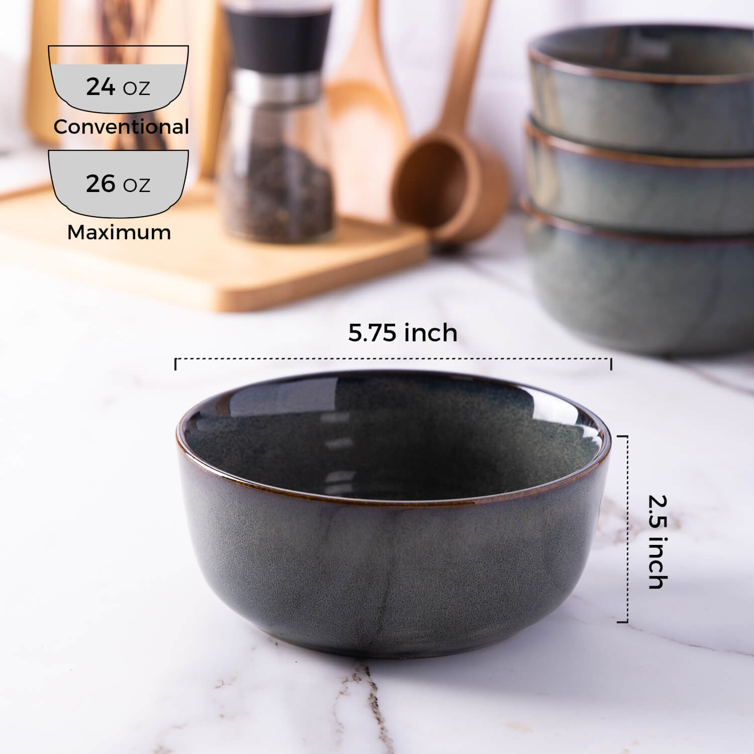 Stoneware Cereal Bowls Set of 4, 26oz Soup Bowls Set for Cereal Soup Snacks, Modern Kitchen bowls for Meal, Dishwasher &Microwave Safe.