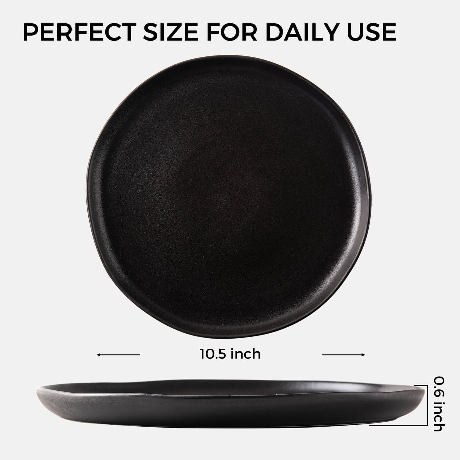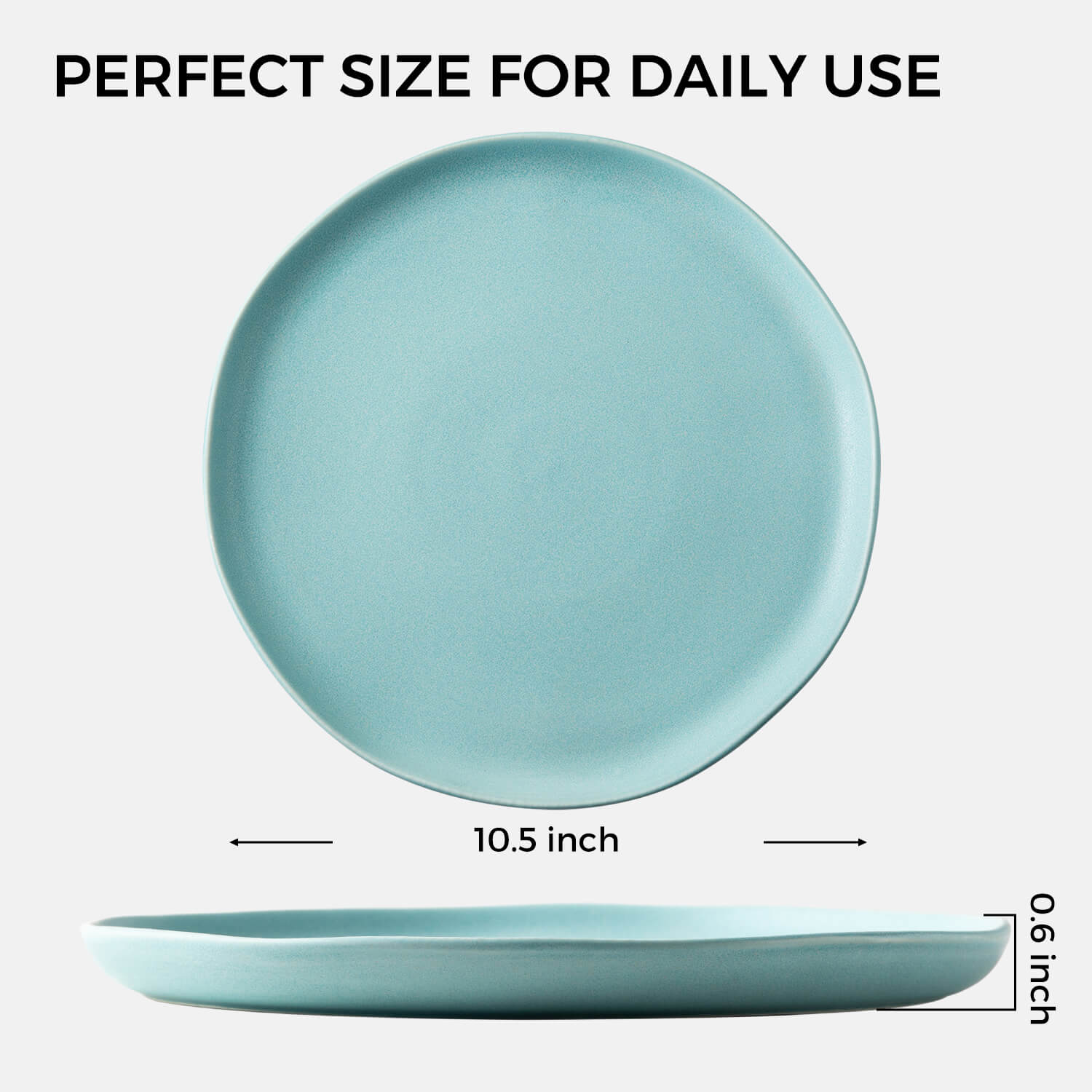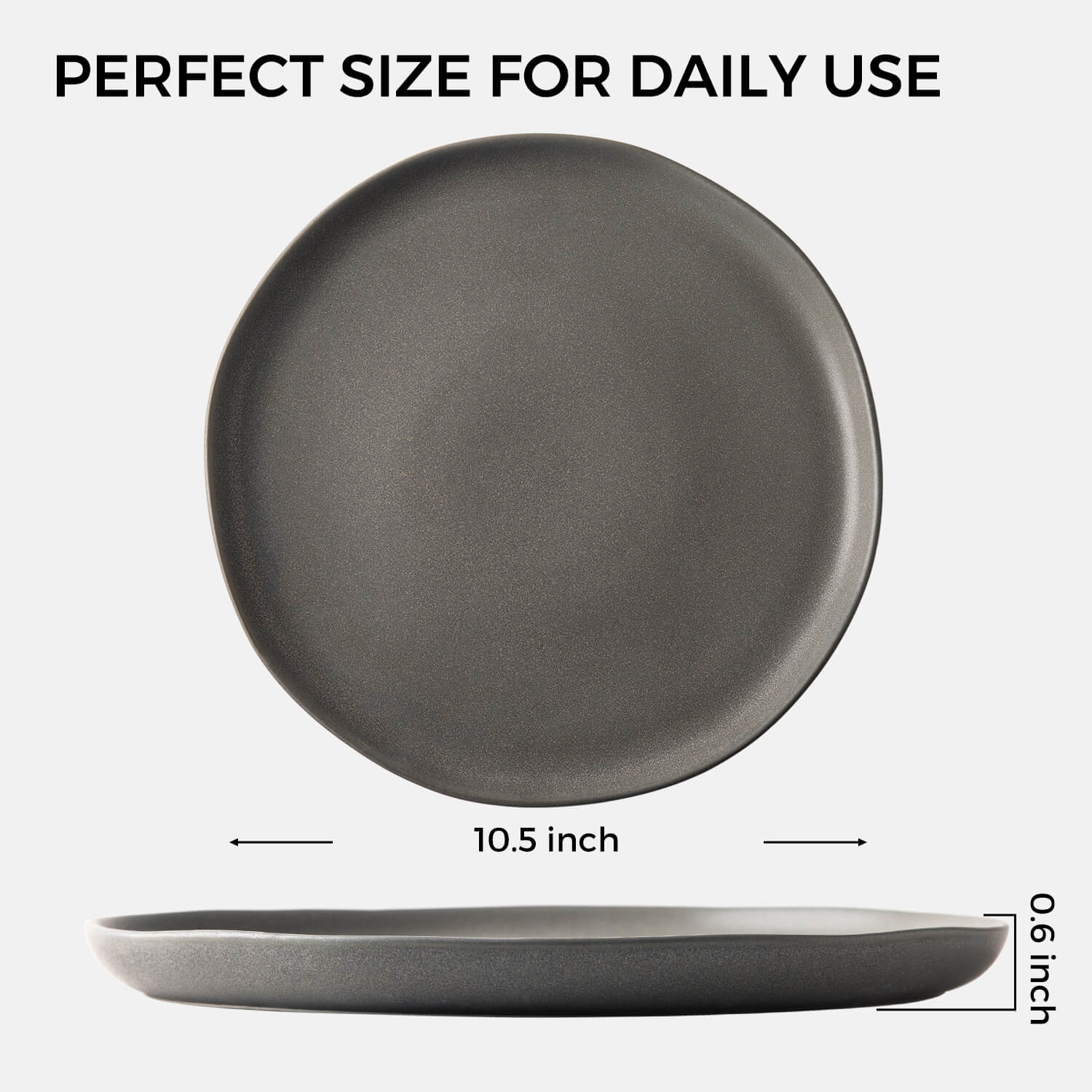 Dinner Plates Set of 6, Wavy Rim 10.5 Inch Stoneware Dish Set, Large Dinnerware Plates for Kitchen-Microwave&Dishwasher Safe, Scratch Resistant-Reactive Glaze Matte