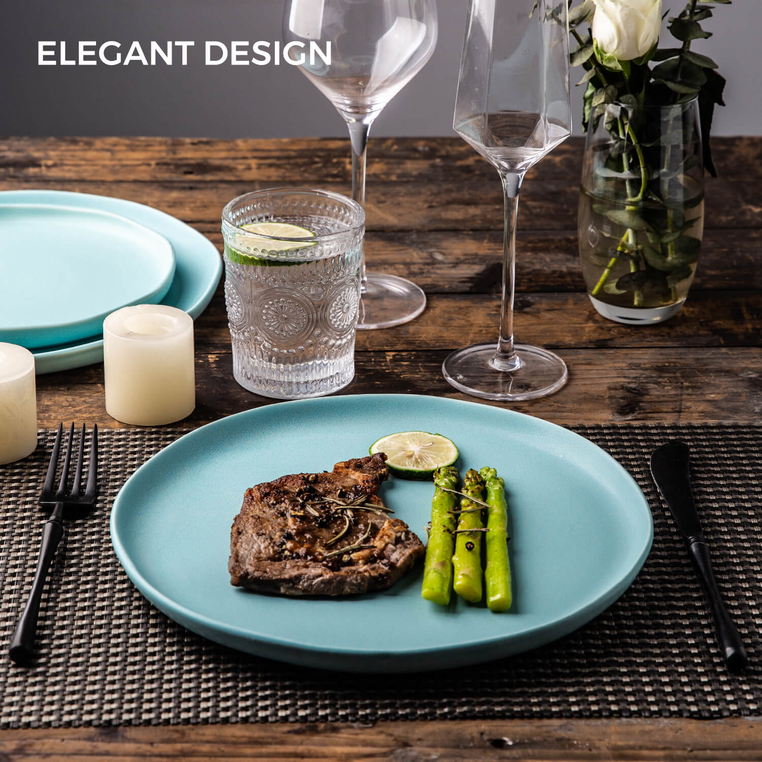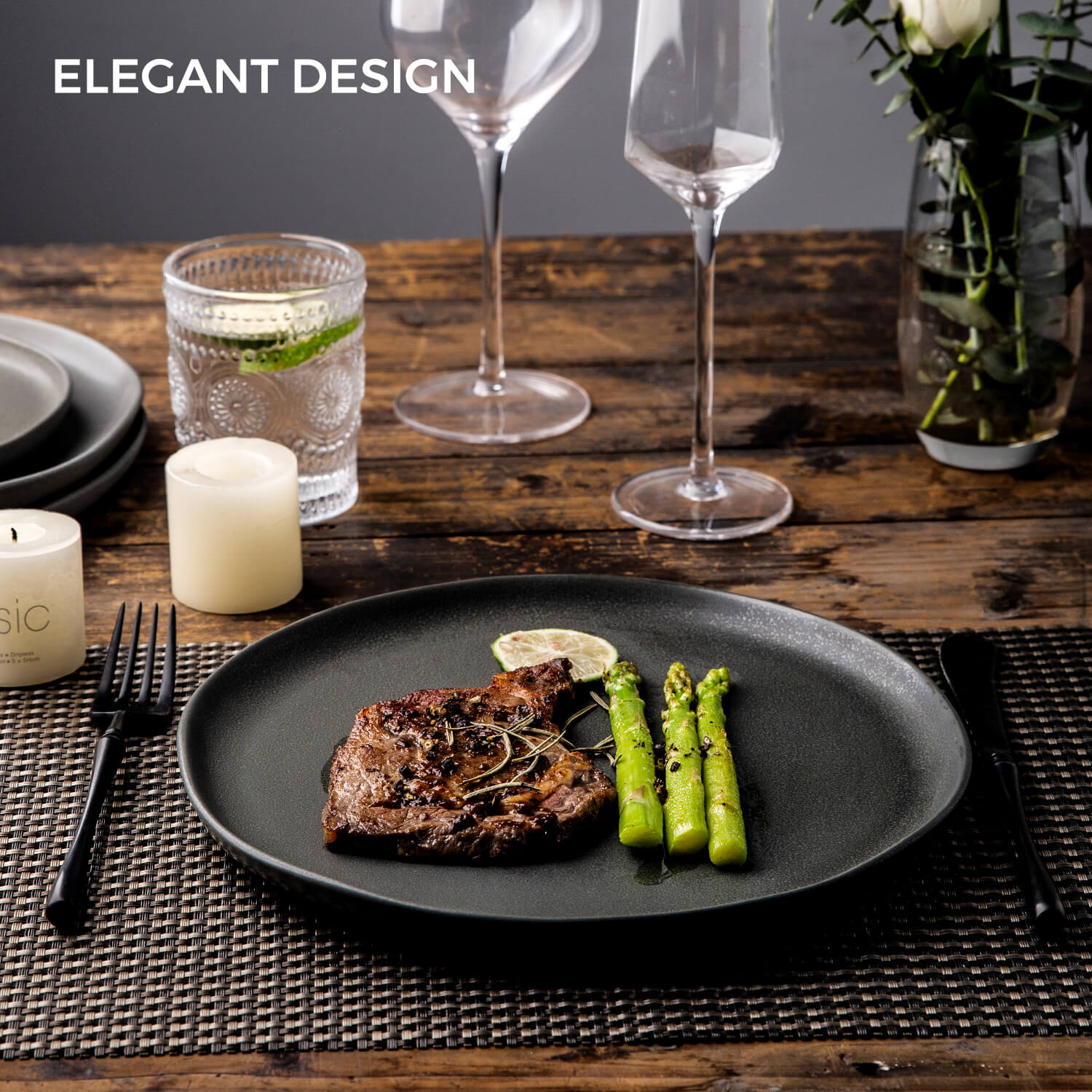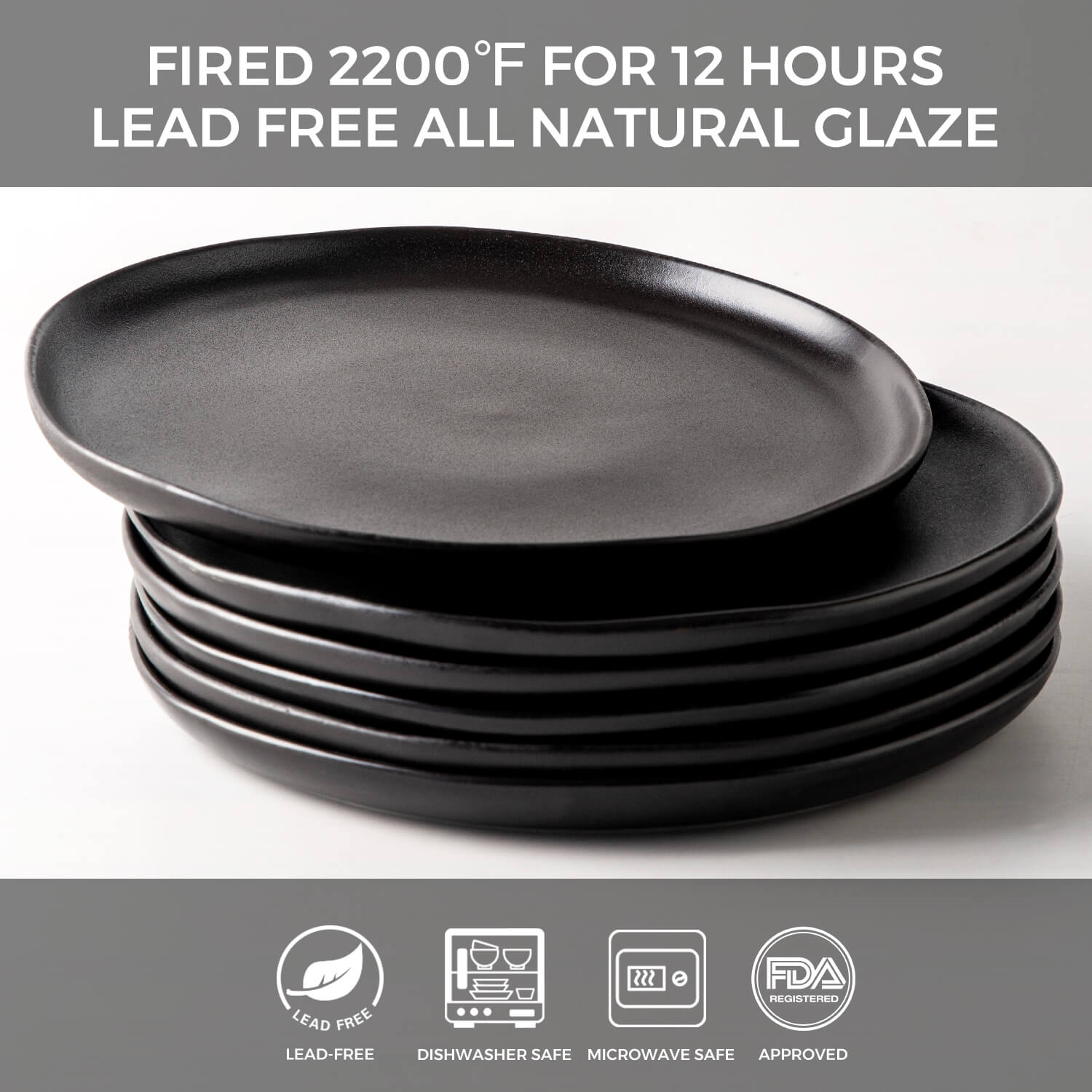 Dinner Plates Set of 6, Wavy Rim 10.5 Inch Stoneware Dish Set, Large Dinnerware Plates for Kitchen-Microwave&Dishwasher Safe, Scratch Resistant-Reactive Glaze Matte