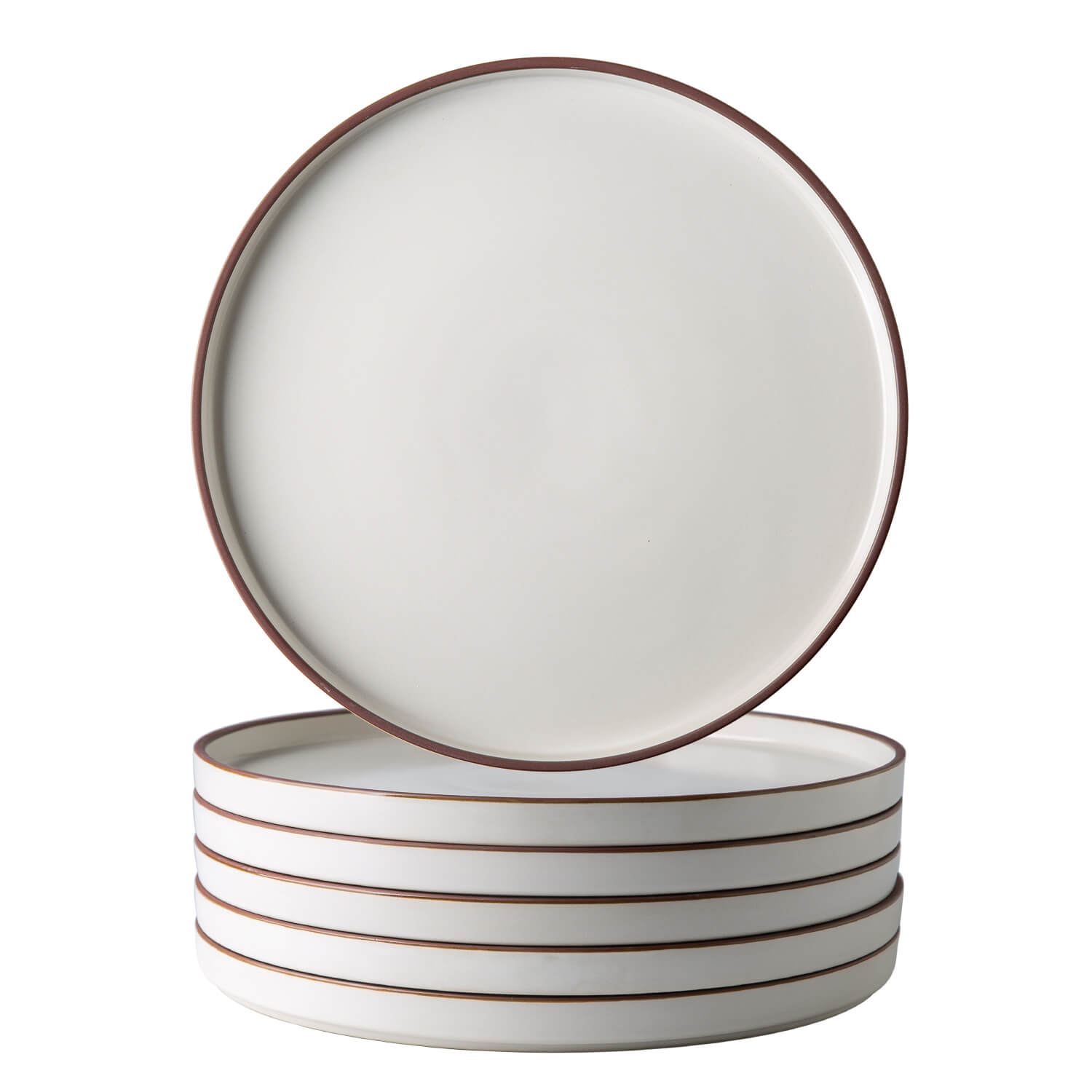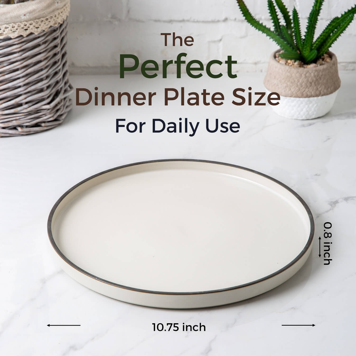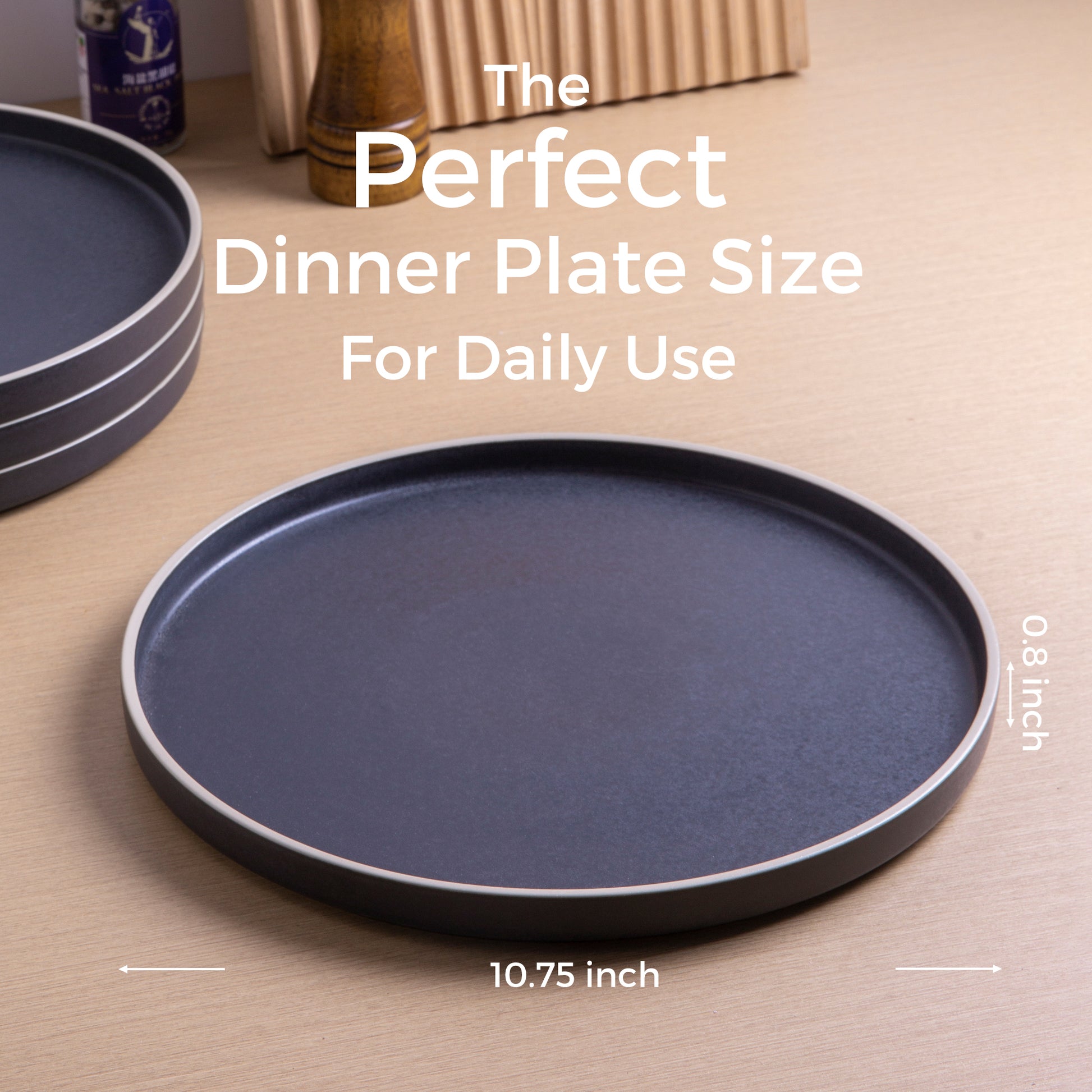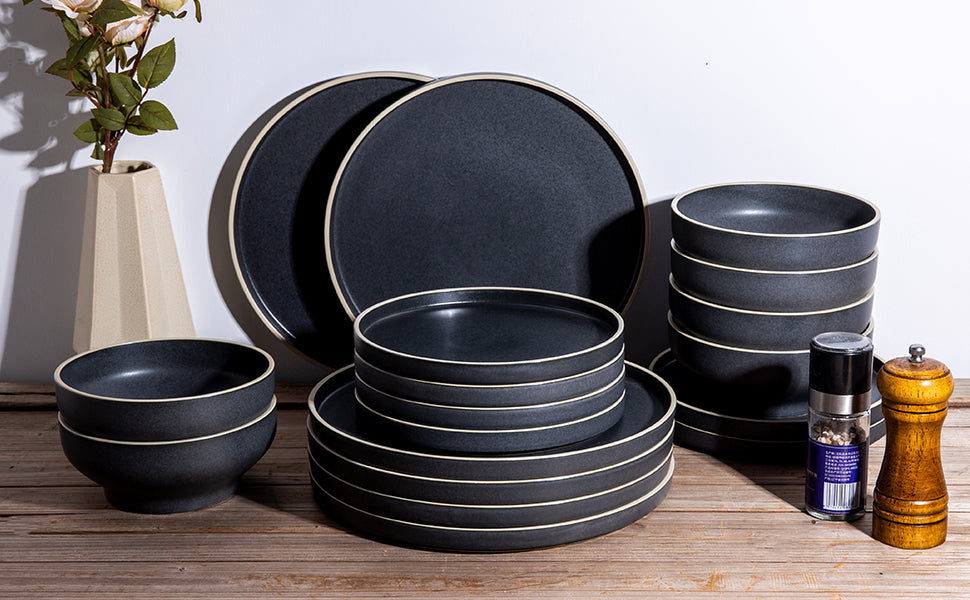 Ceramic Dinner Plates 10.75Inch handmade Reactive Glaze Plates, Large Rustic Shape Dinnerware Dish Set for Kitchen, Microwave & Dishwasher Safe, Scratch Resistant black with brown rim,black with white rim,white with black rim,white with brown rim