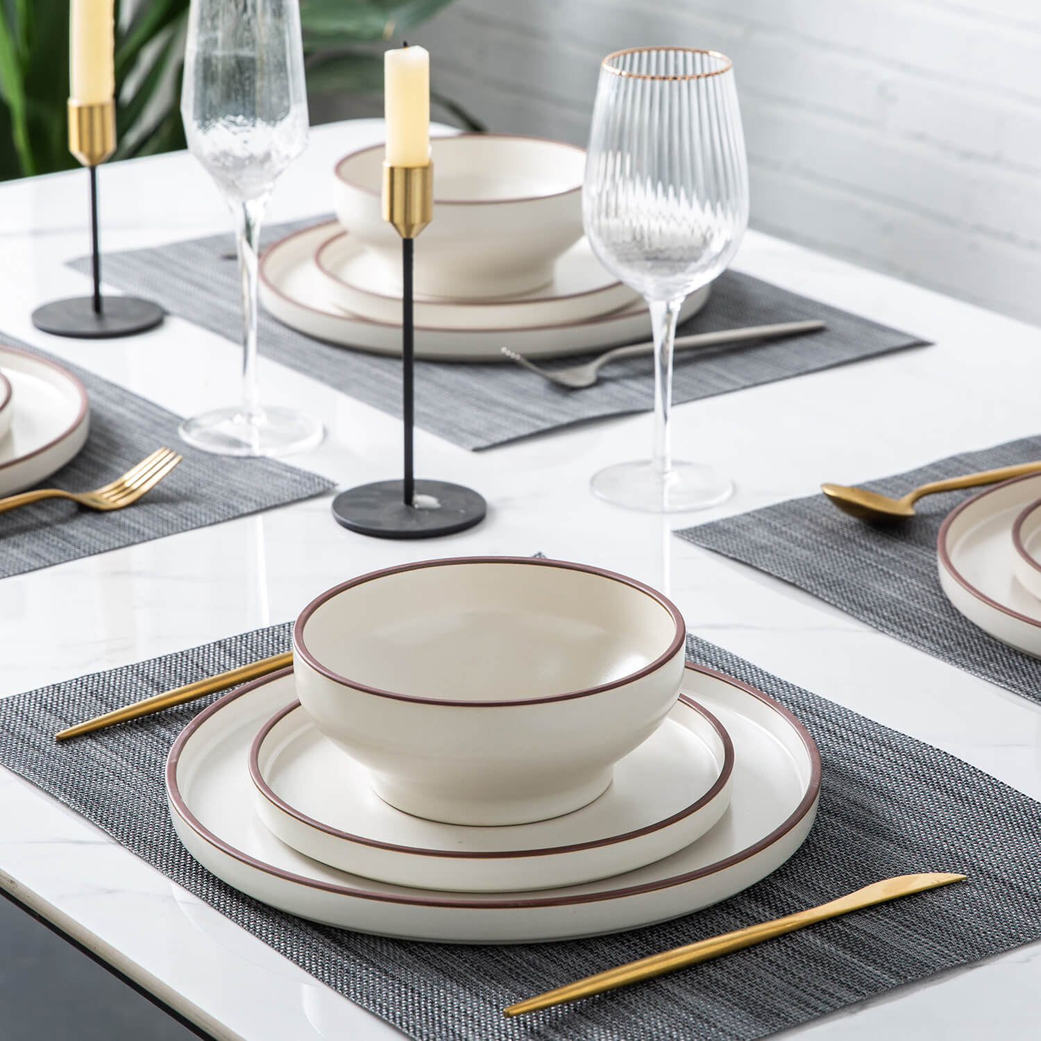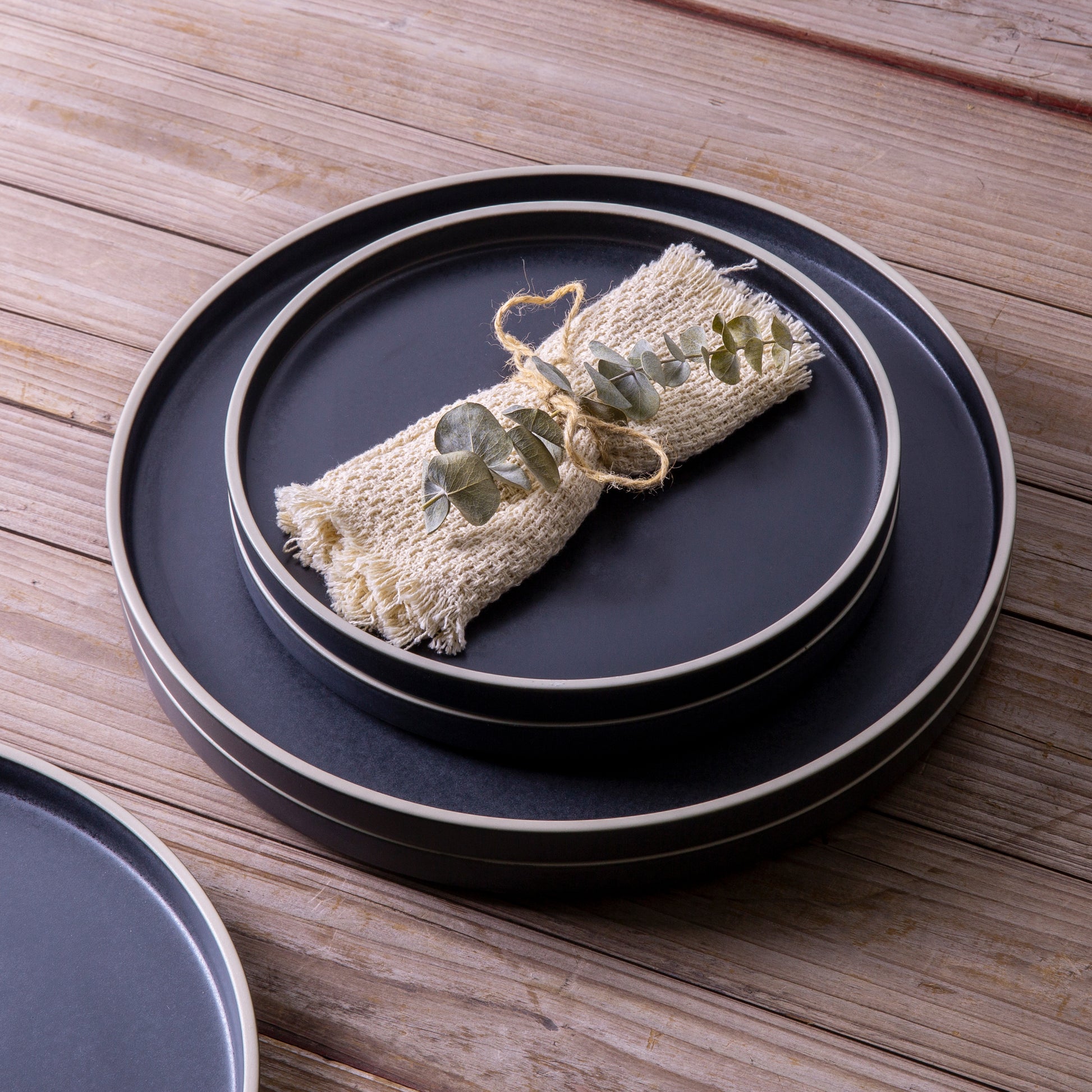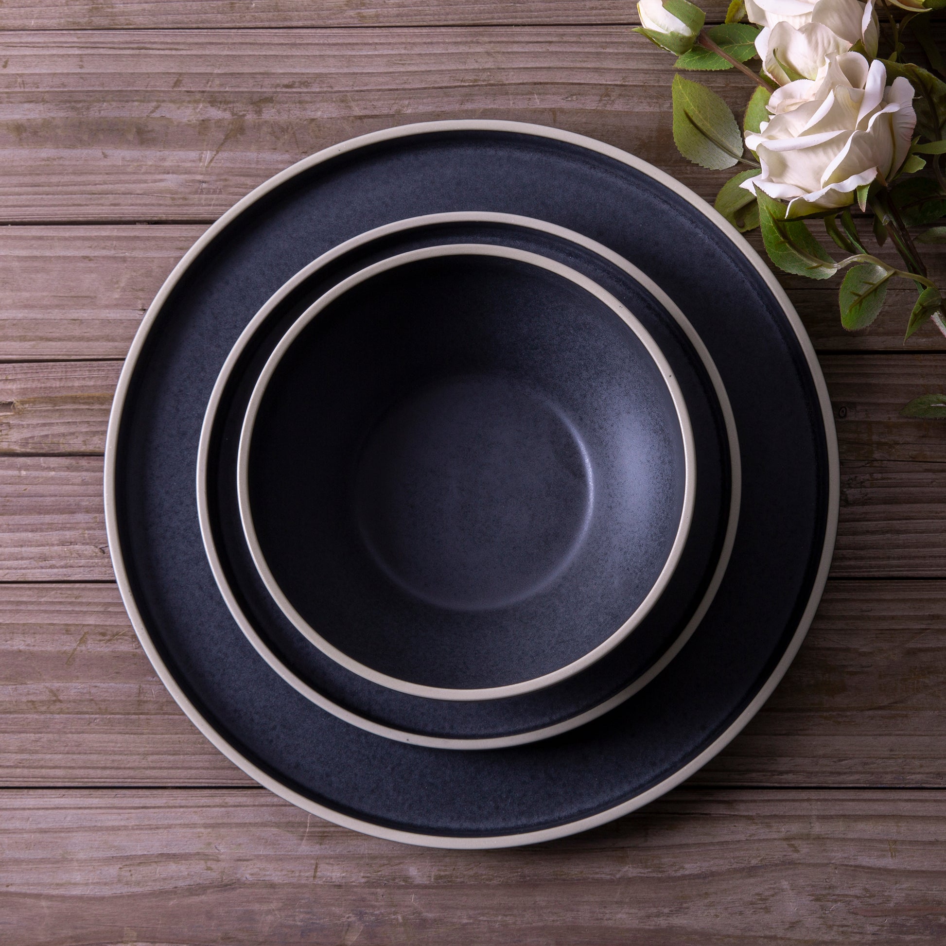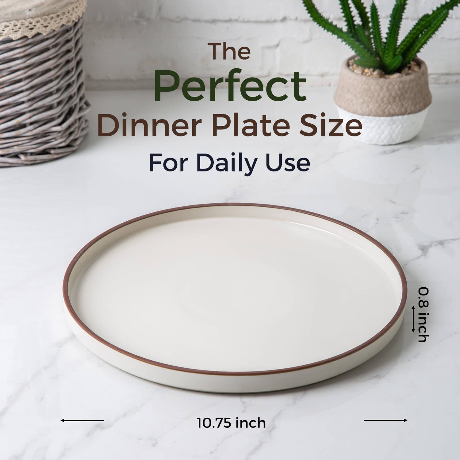 Ceramic Dinner Plates 10.75Inch handmade Reactive Glaze Plates, Large Rustic Shape Dinnerware Dish Set for Kitchen, Microwave & Dishwasher Safe, Scratch Resistant black with brown rim,black with white rim,white with black rim,white with brown rim