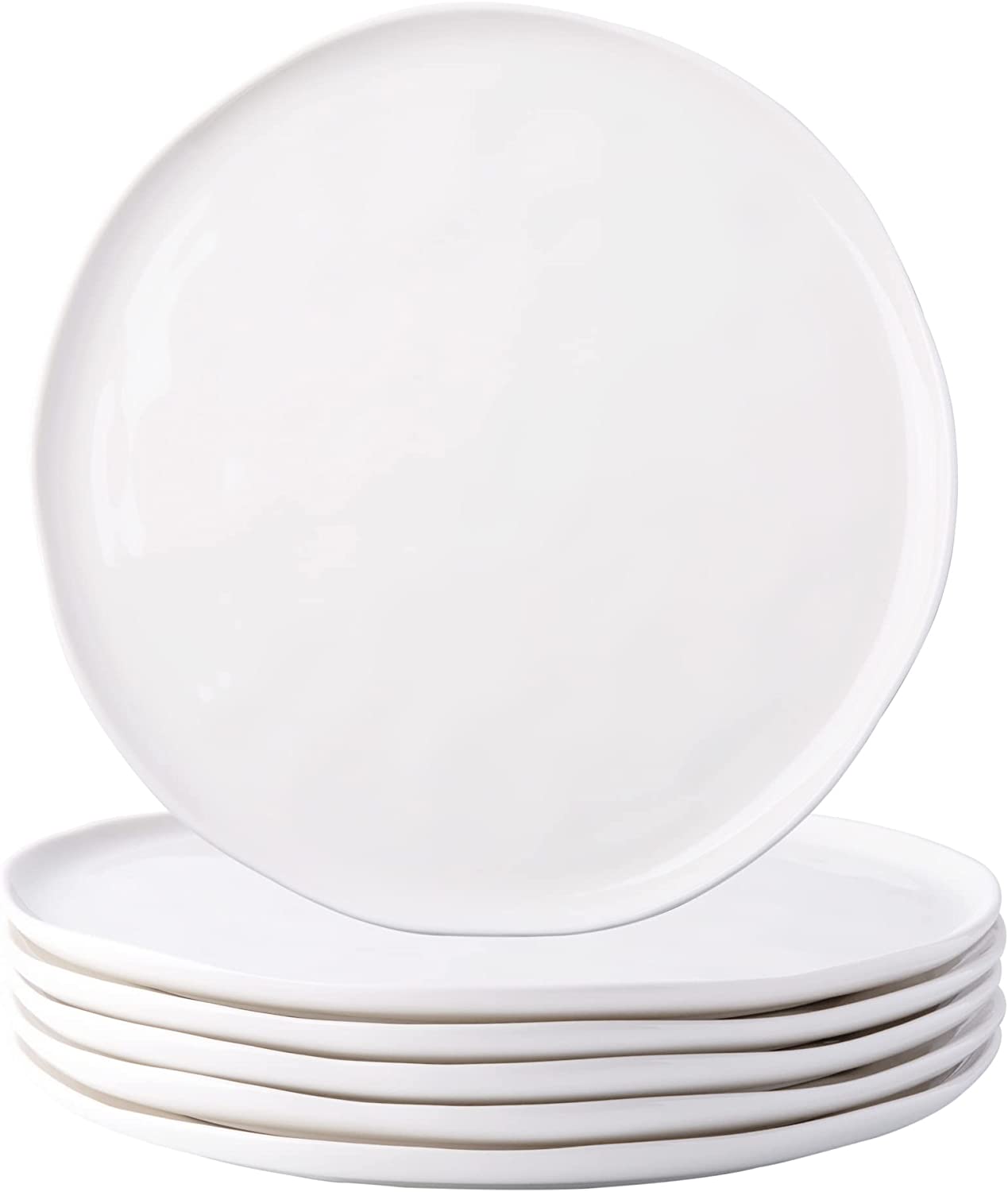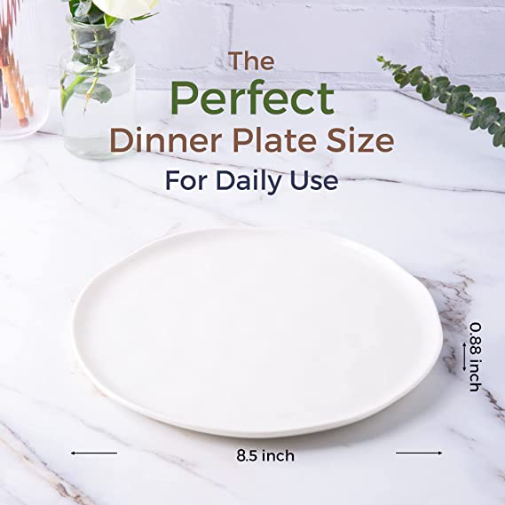 Ceramic Salad Plates 8.5 Inch Plates, Large Rustic Shape Dinnerware Dish Set for Kitchen, Microwave & Dishwasher Safe, Scratch Resistant White, Black, Light-blue