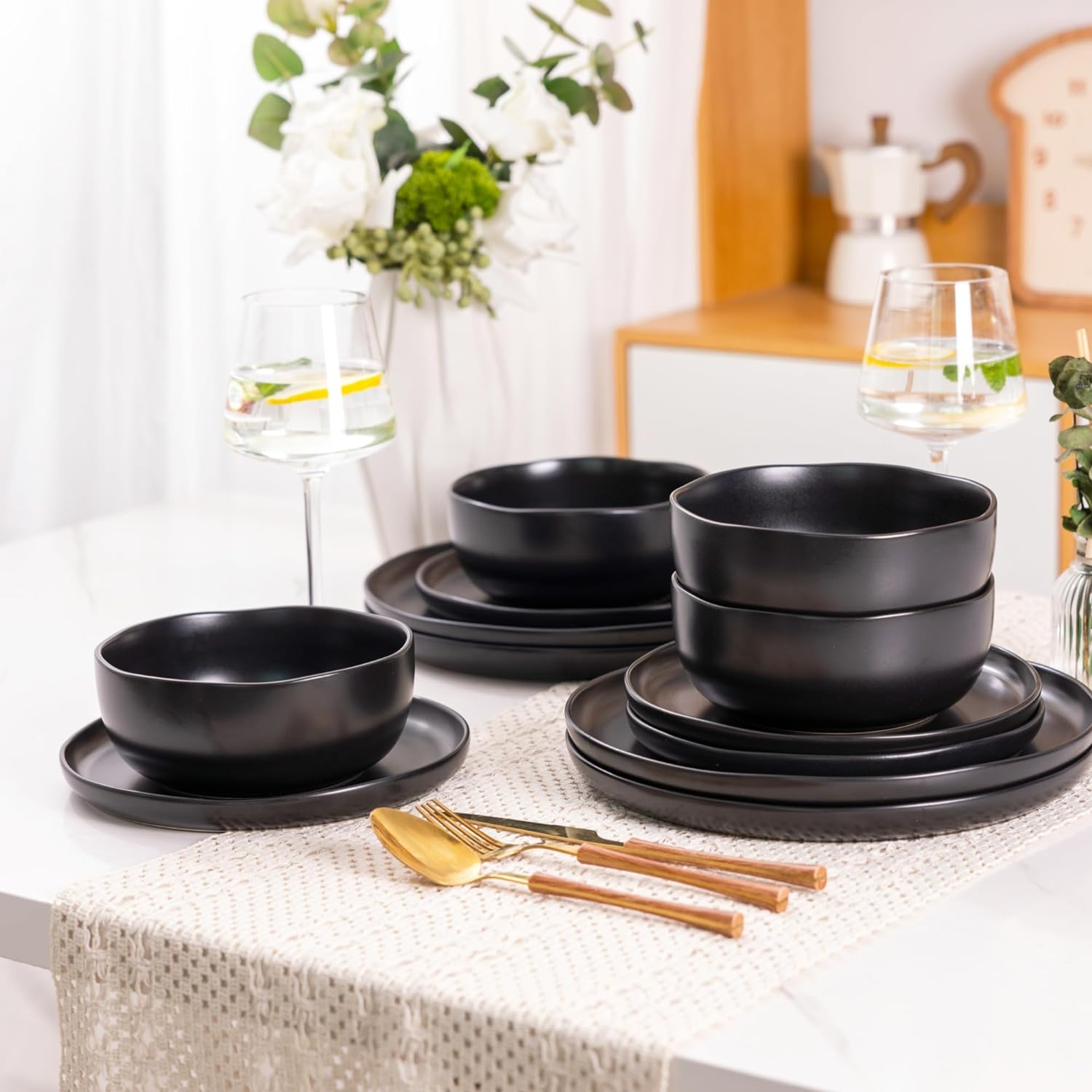 AmorArc Ceramic Dinnerware Sets, Wavy Rim Stoneware Plates and Bowls Sets, Highly Chip and Crack Resistant | Dishwasher & Microwave & Oven Safe Dishes set, Service for 4 (12pc)