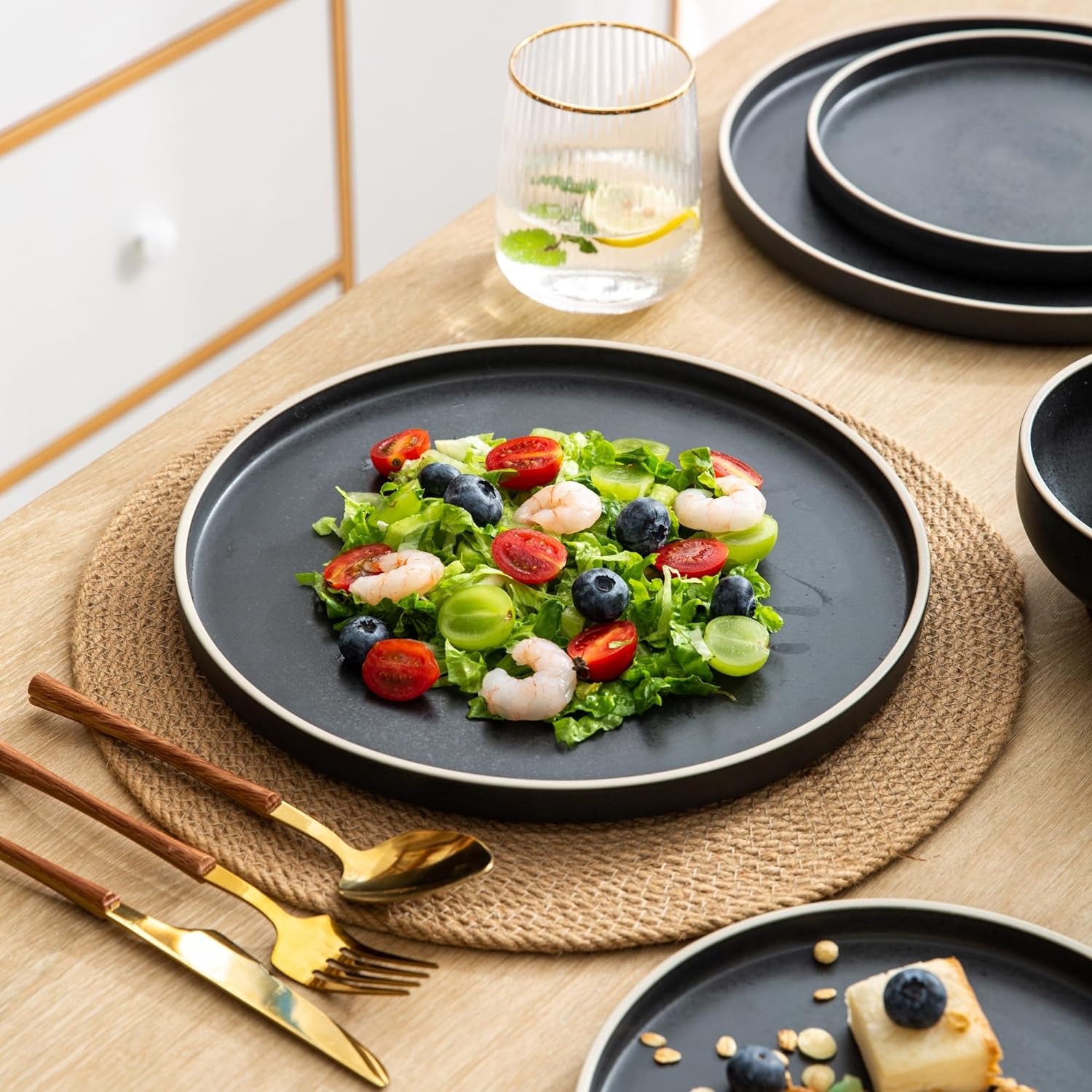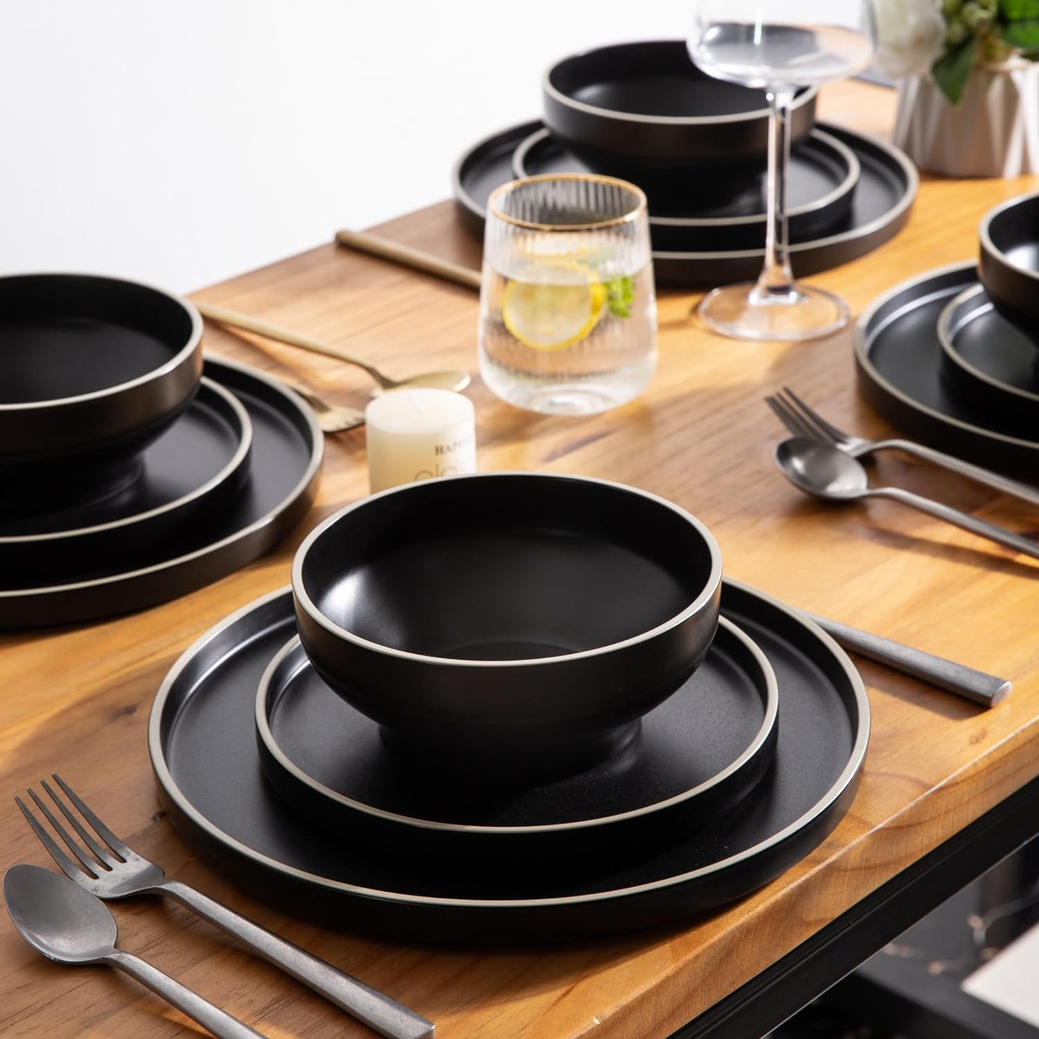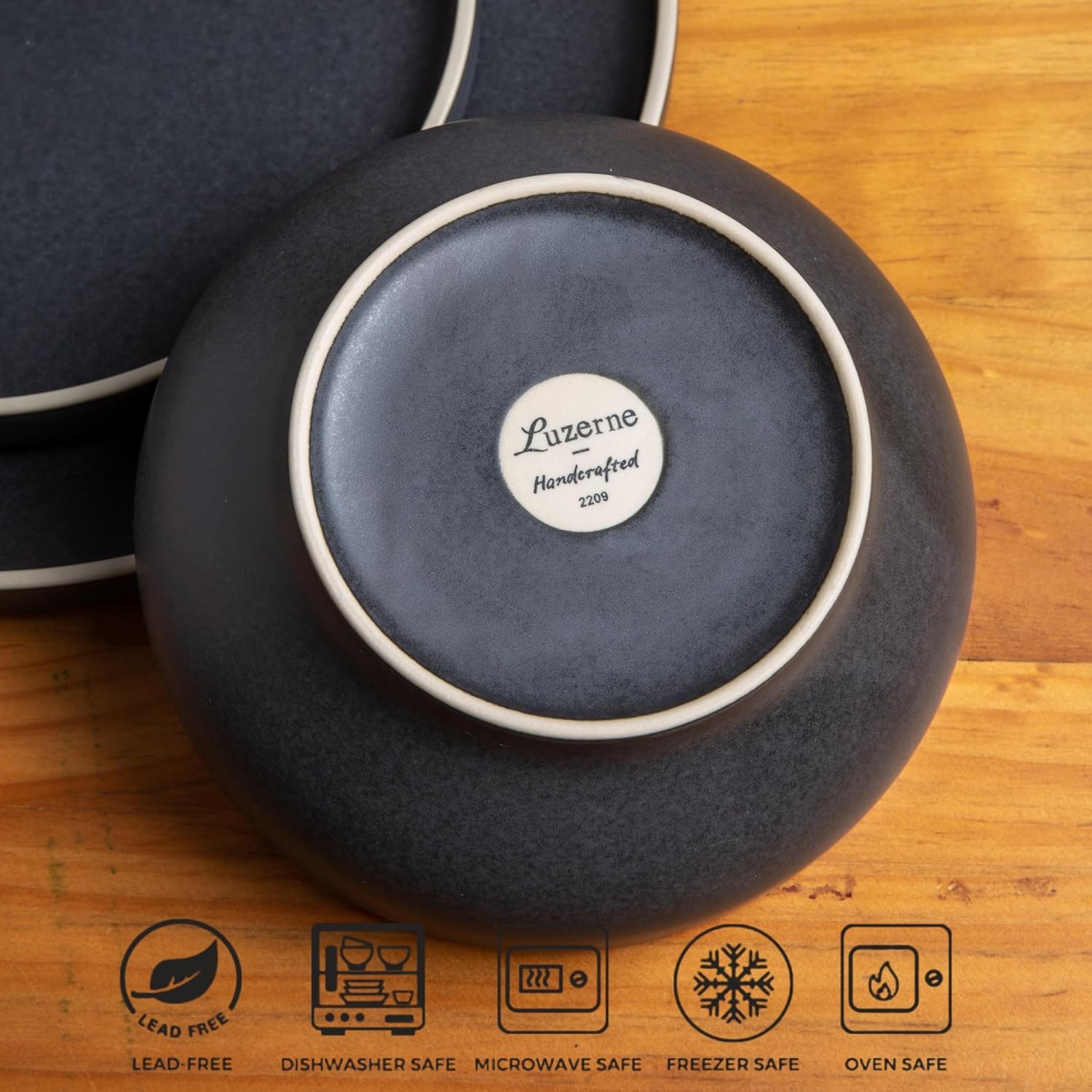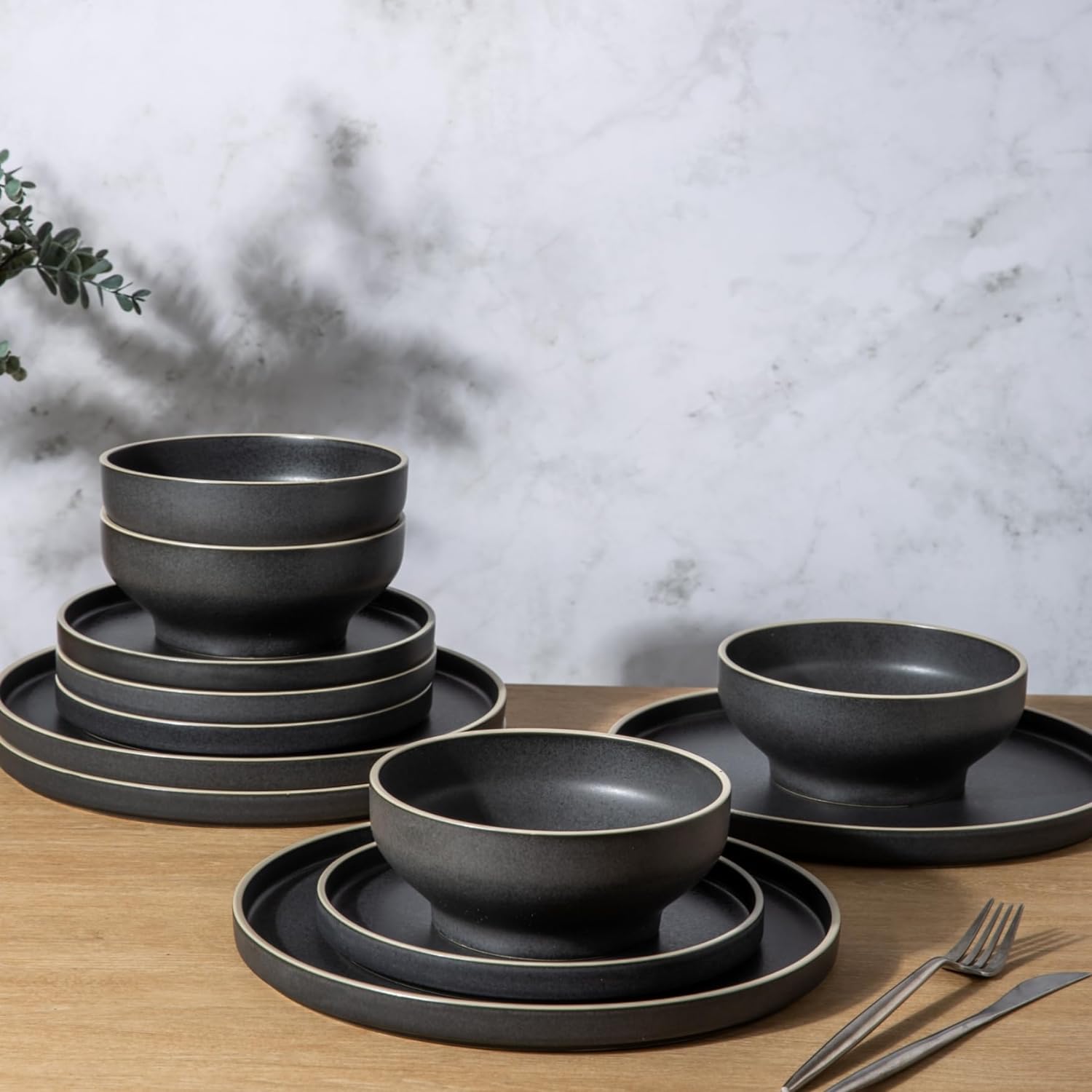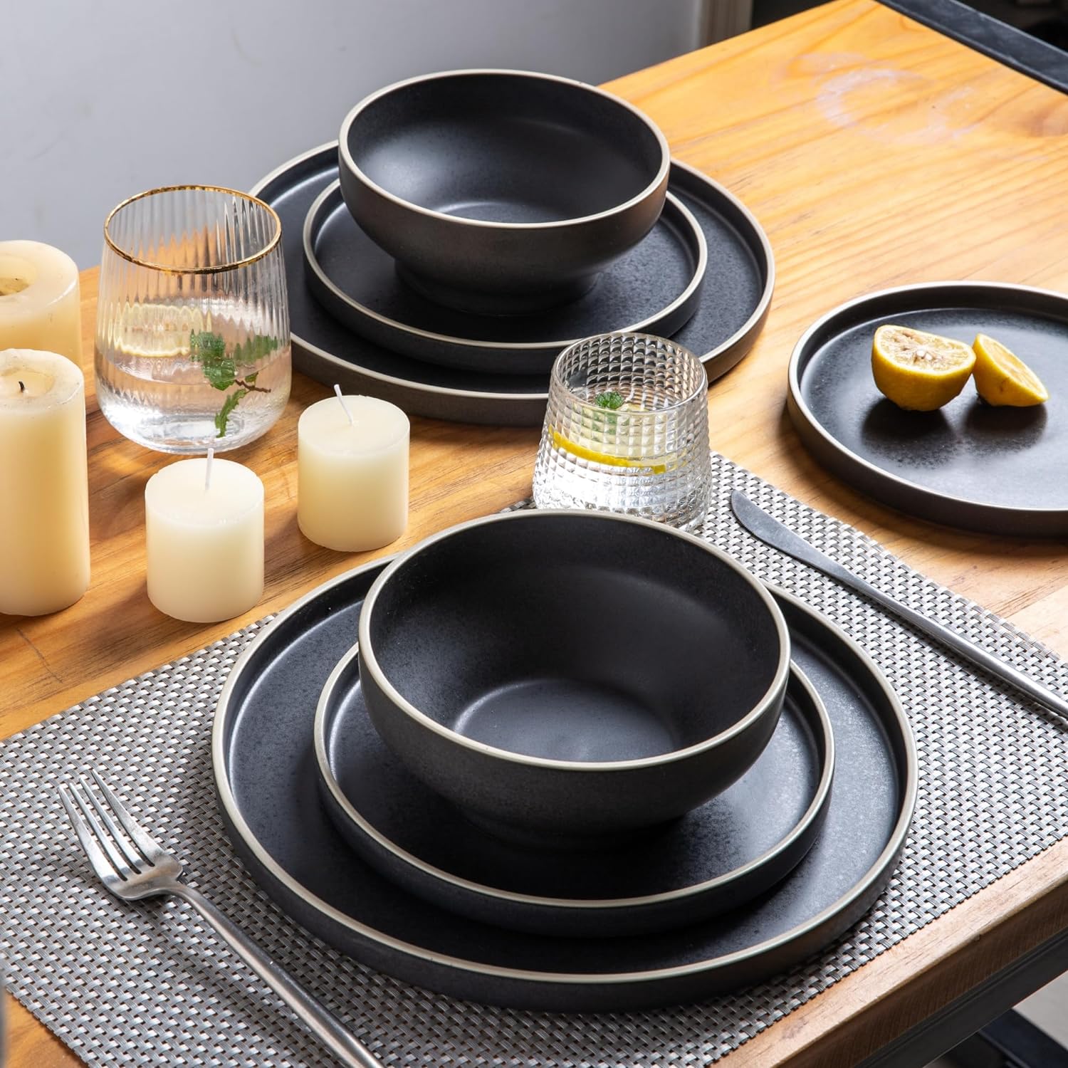 LERATIO Ceramic Dinnerware Sets of 4, Speckled Stoneware Plates and Bowls Set, Chip and Crack Resistant | Oven & Dishwasher & Microwave Safe Dishes Set, Service for 4 - White Rim (12 PCS)