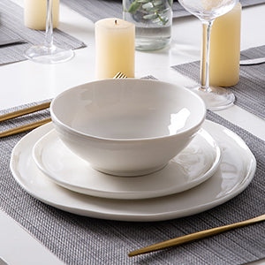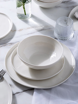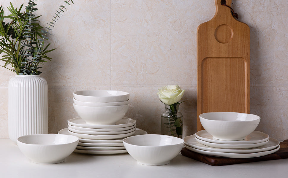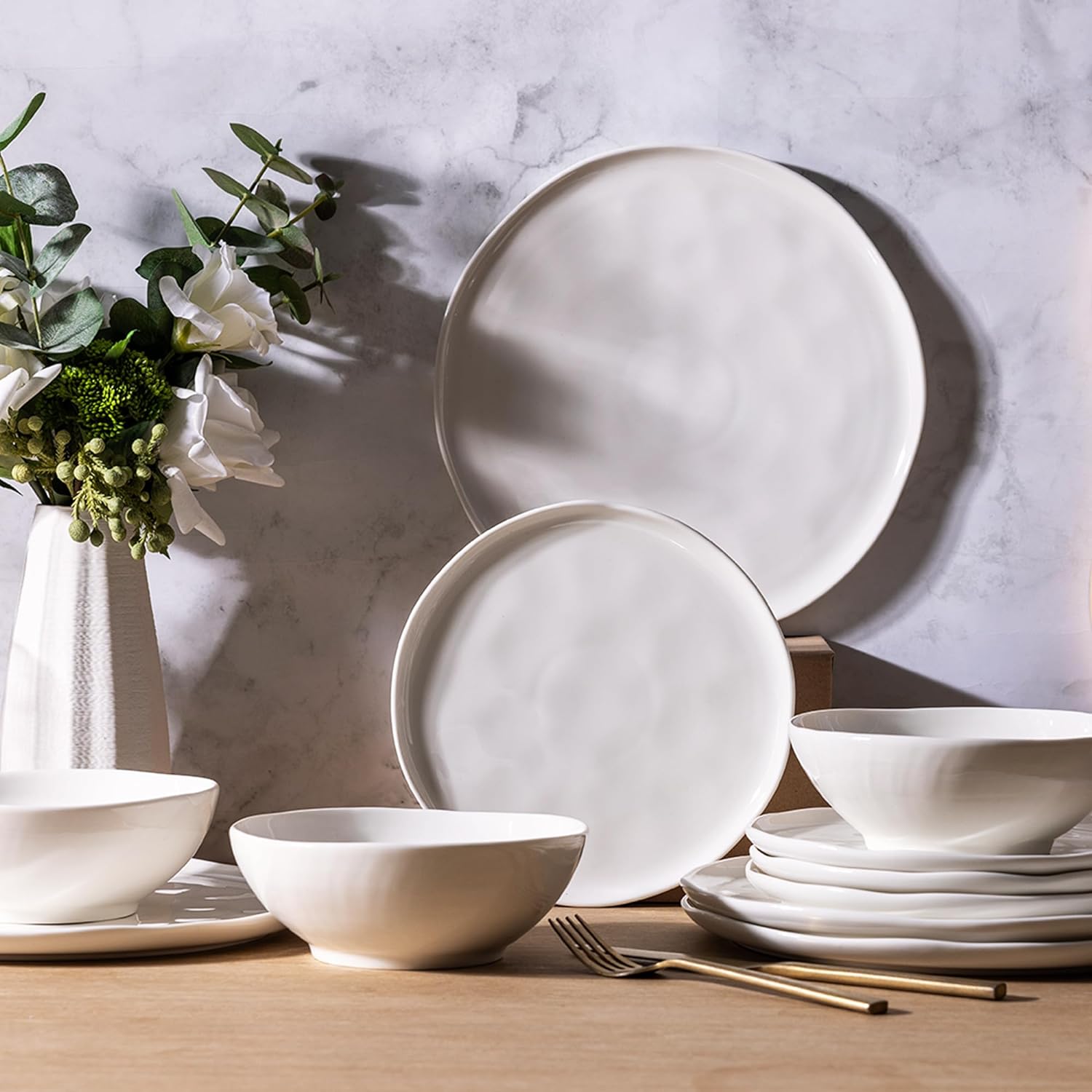 LERATIO Ceramic Dinnerware Sets of 4,Porcelain Plates and Bowls Sets with Wavy Edge,Microwave & Dishwasher & Oven Safe,Light Weight & Scratch Resistant Dishes Sets-Service for 4 (12pcs)-White