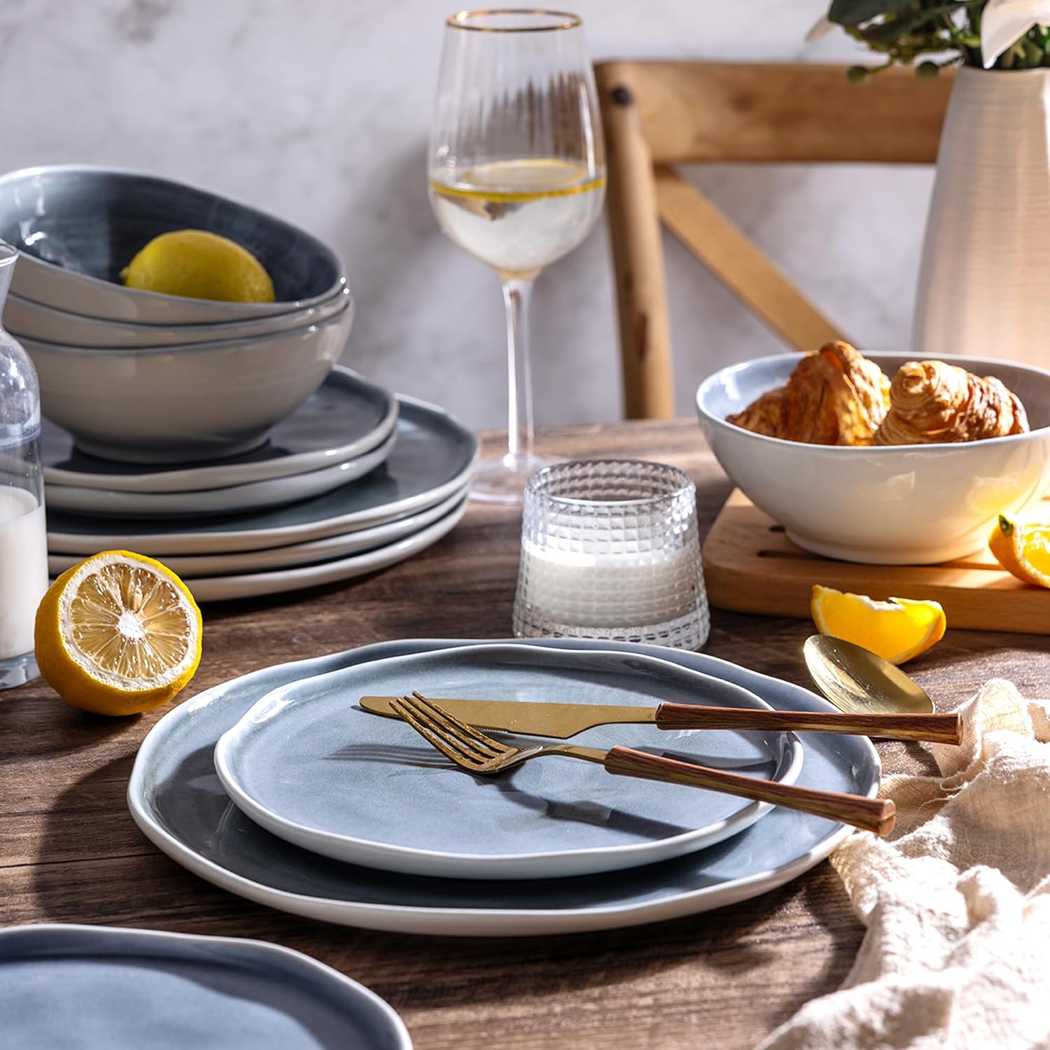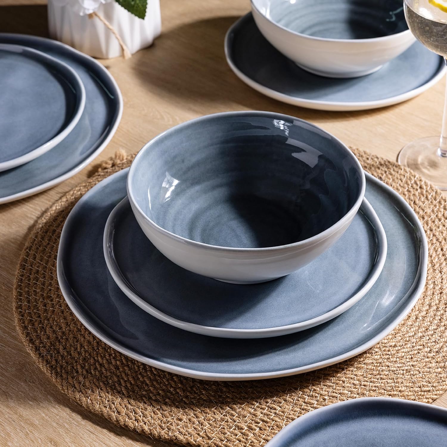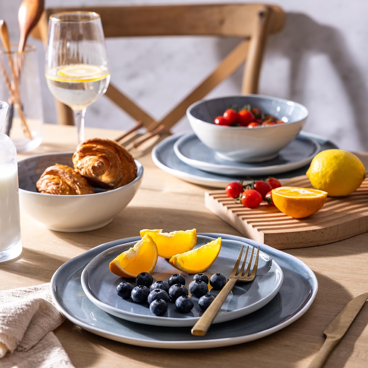 LERATIO Ceramic Dinnerware Sets of 4,Porcelain Plates and Bowls Sets with Wavy Edge,Microwave & Dishwasher & Oven Safe,Light Weight & Scratch Resistant Dishes Sets-Service for 4 (12pcs)-Light Jean Blue