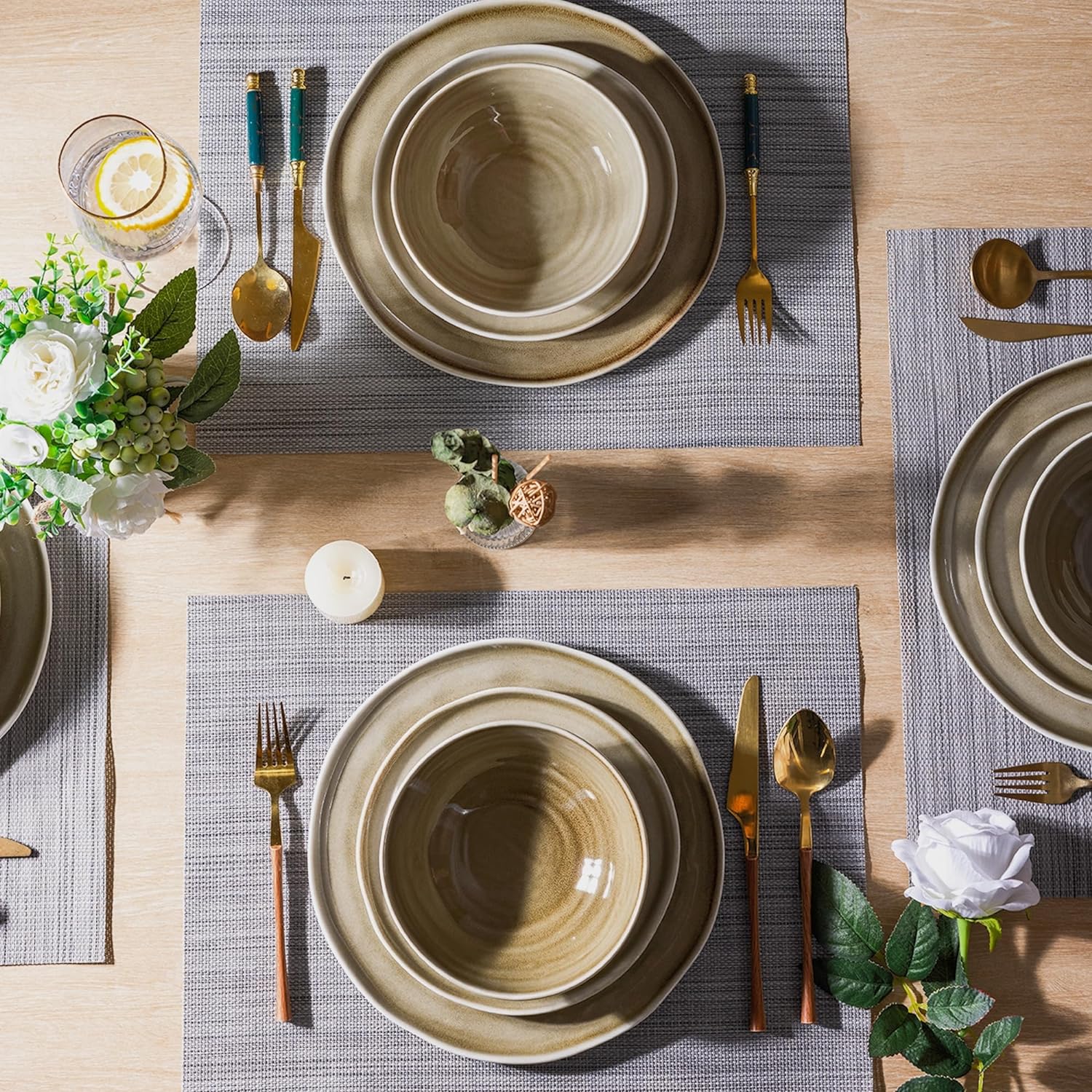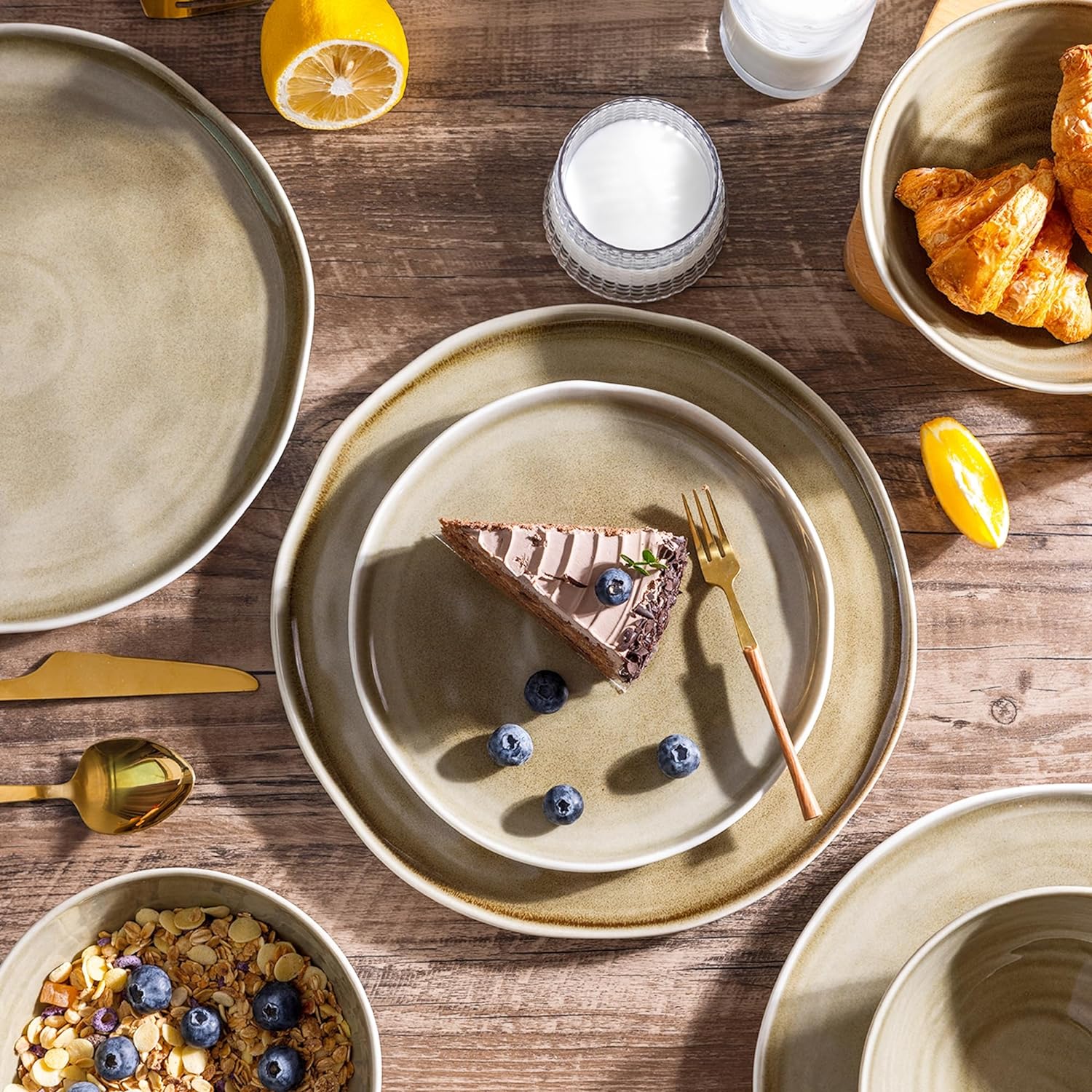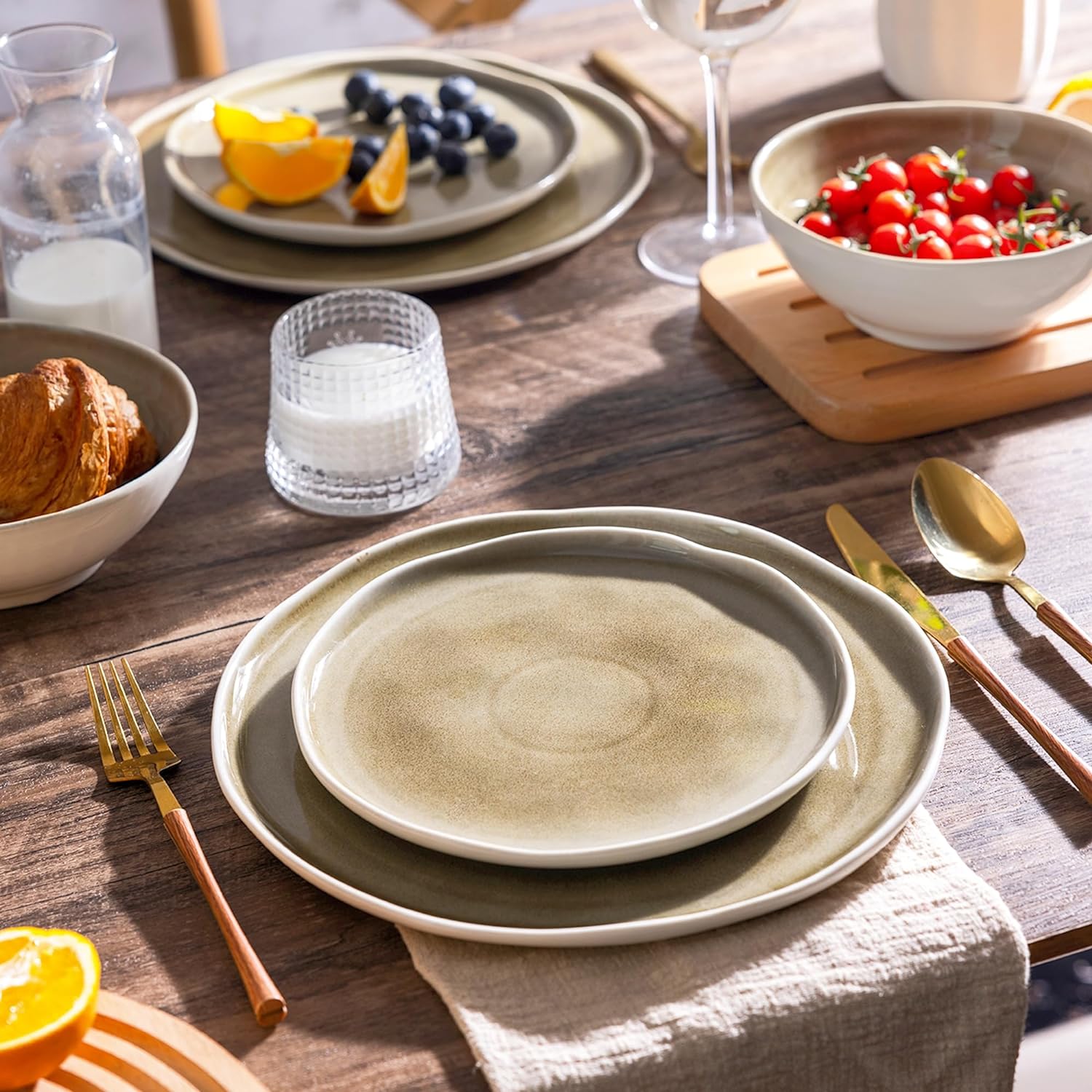 Leratio Ceramic Dinnerware Sets of 4,Porcelain Plates and Bowls Sets with Wavy Edge,Microwave & Dishwasher & Oven Safe,Light Weight & Scratch Resistant Dishes Sets-Service for 4 (12pcs)-Olive