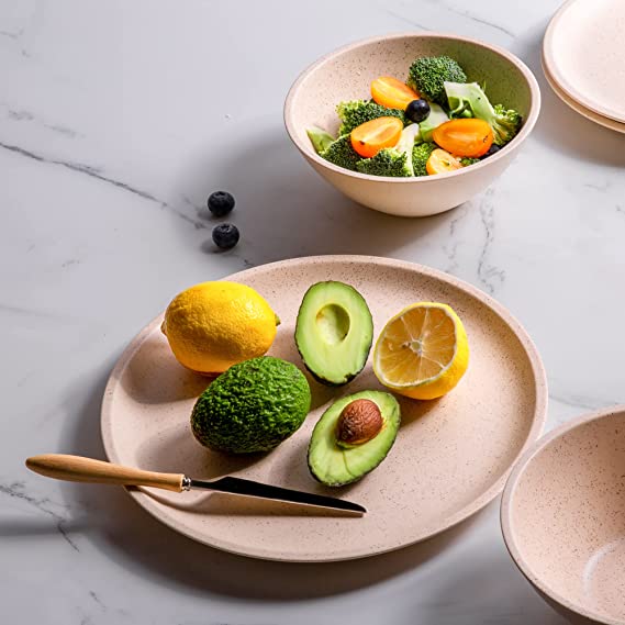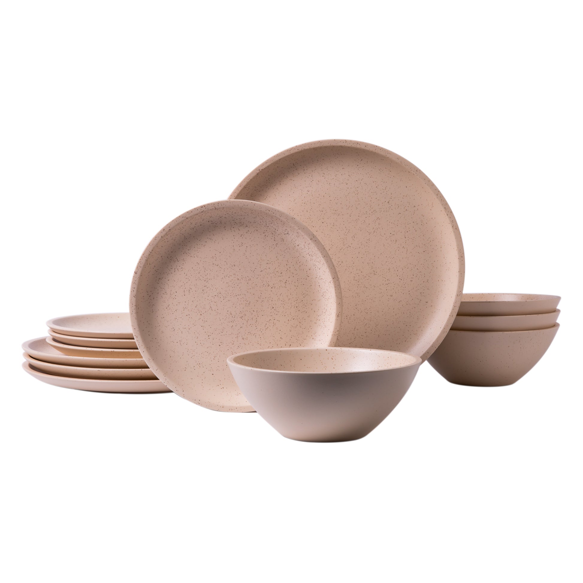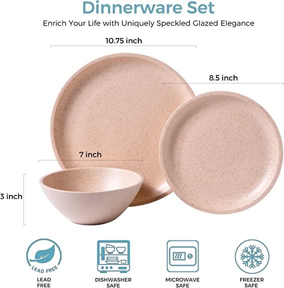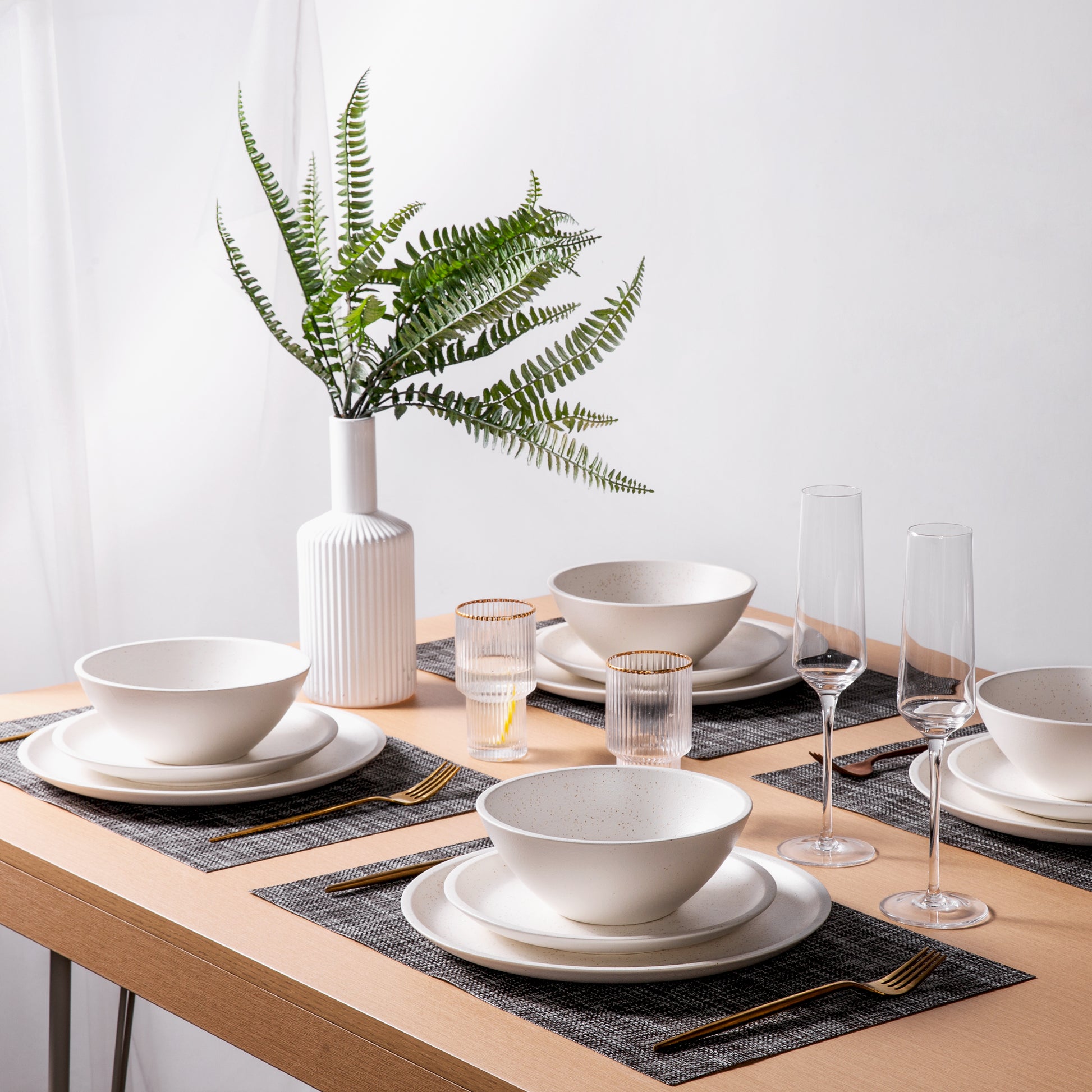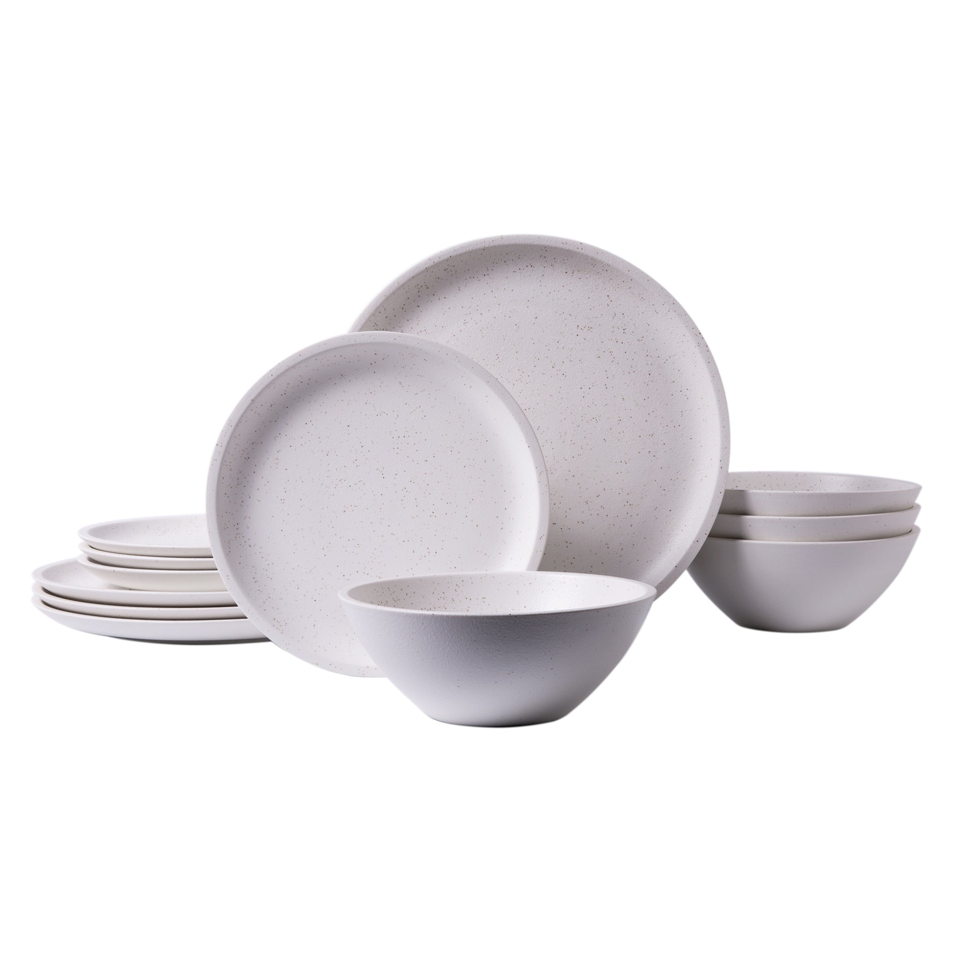 Porcelain Dinnerware Sets, Round Matte Speckled Glaze Plates and Bowls Set, Highly Chip and Crack Resistant, Dishwasher & Microwave Safe,Service for 4 (12pc), Black, White, Grey, Yellow