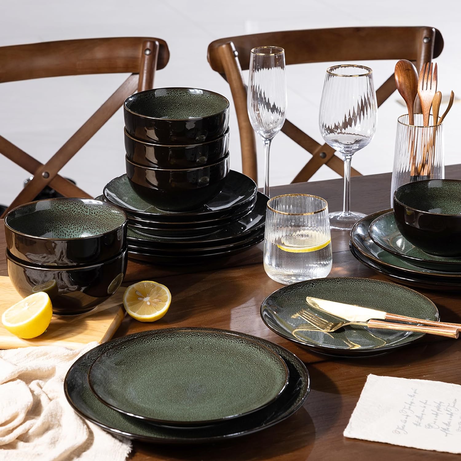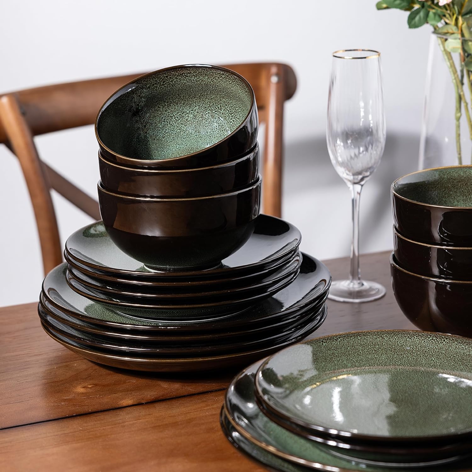 LERATIO Ceramic Dinnerware Sets,Stoneware Coupe Plates and Bowls Sets,Highly Chip and Crack Resistant | Dishwasher & Microwave & Oven Safe Dishes set,Reactive Glaze Dinnerware- Service for 6(18pcs)