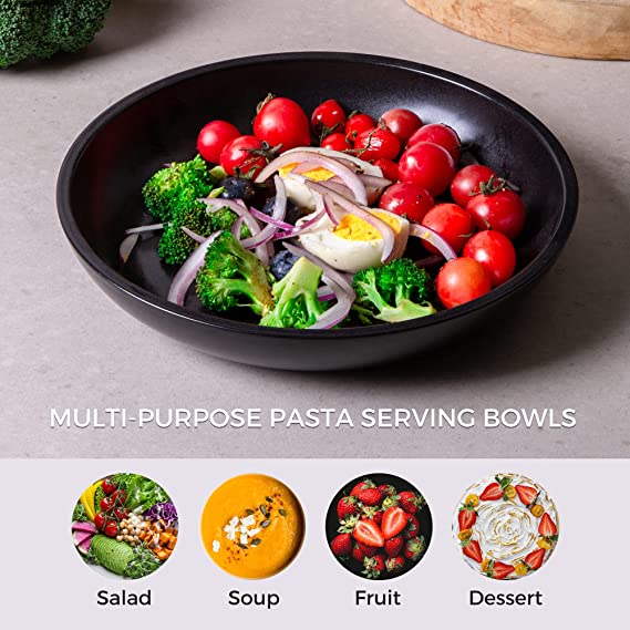 Handcrafted Ceramic Pasta Bowls Sets,Highly Chip& Scratch Resistant | Dishwasher & Microwave& Oven Safe Speckled With Yellow,White,Black,White