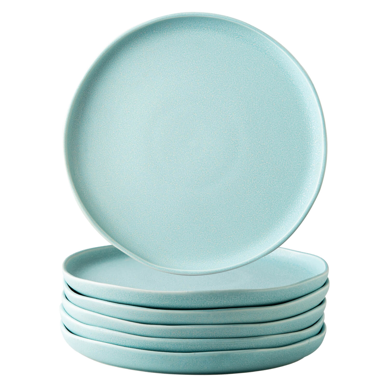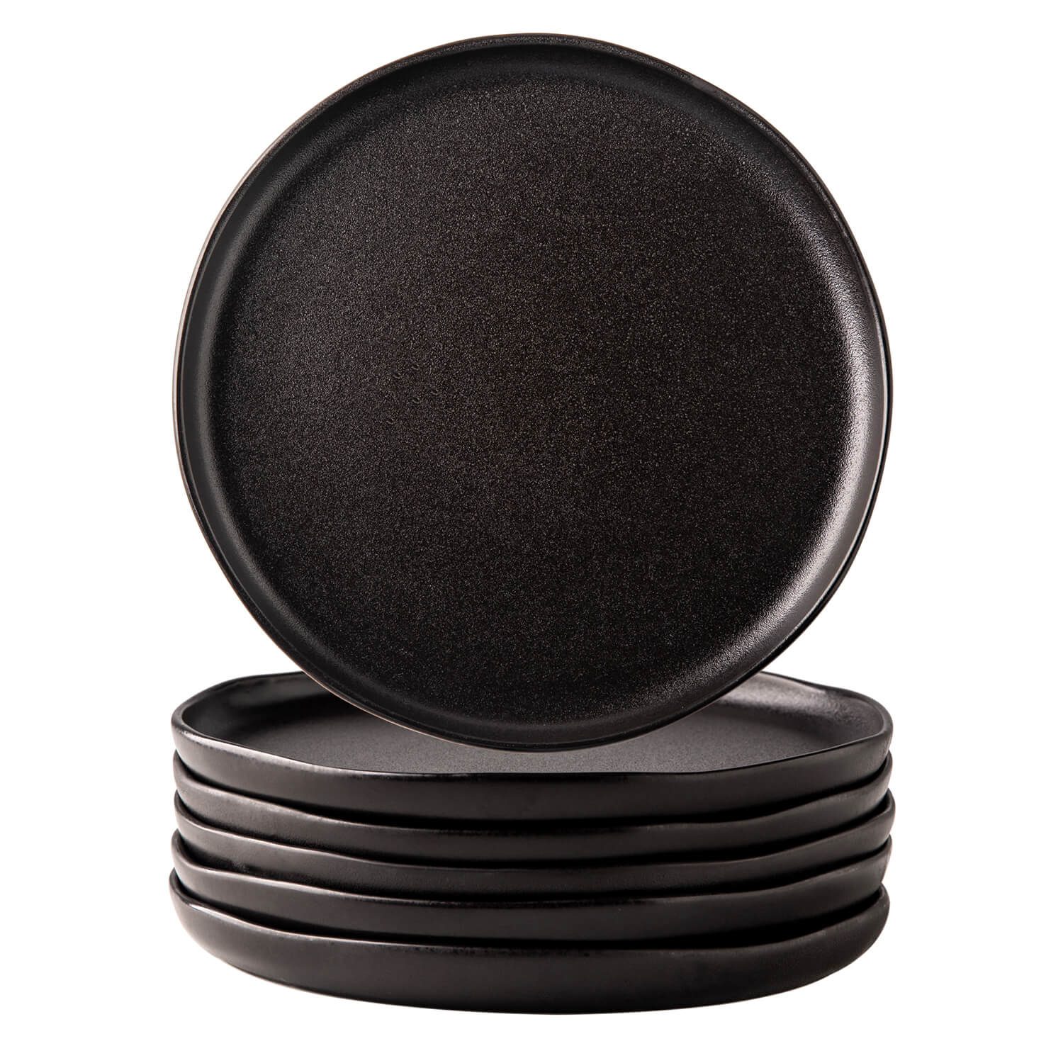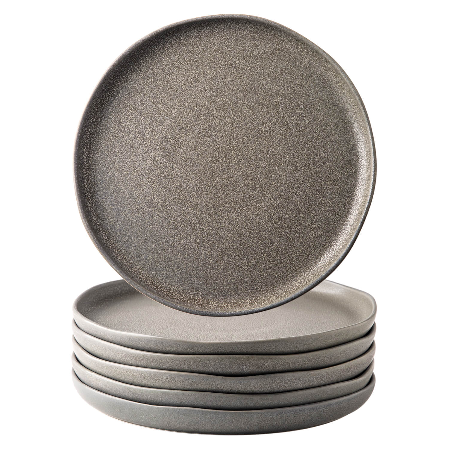 Salad Plates Set of 6, Wavy Rim 8.5 Inch Dish Set, The Dessert,Salad, Appetizer, Small Dinner etc Plate,Microwave, Dishwasher Safe, Scratch Resistant - Reactive Matte Black White Green Grey