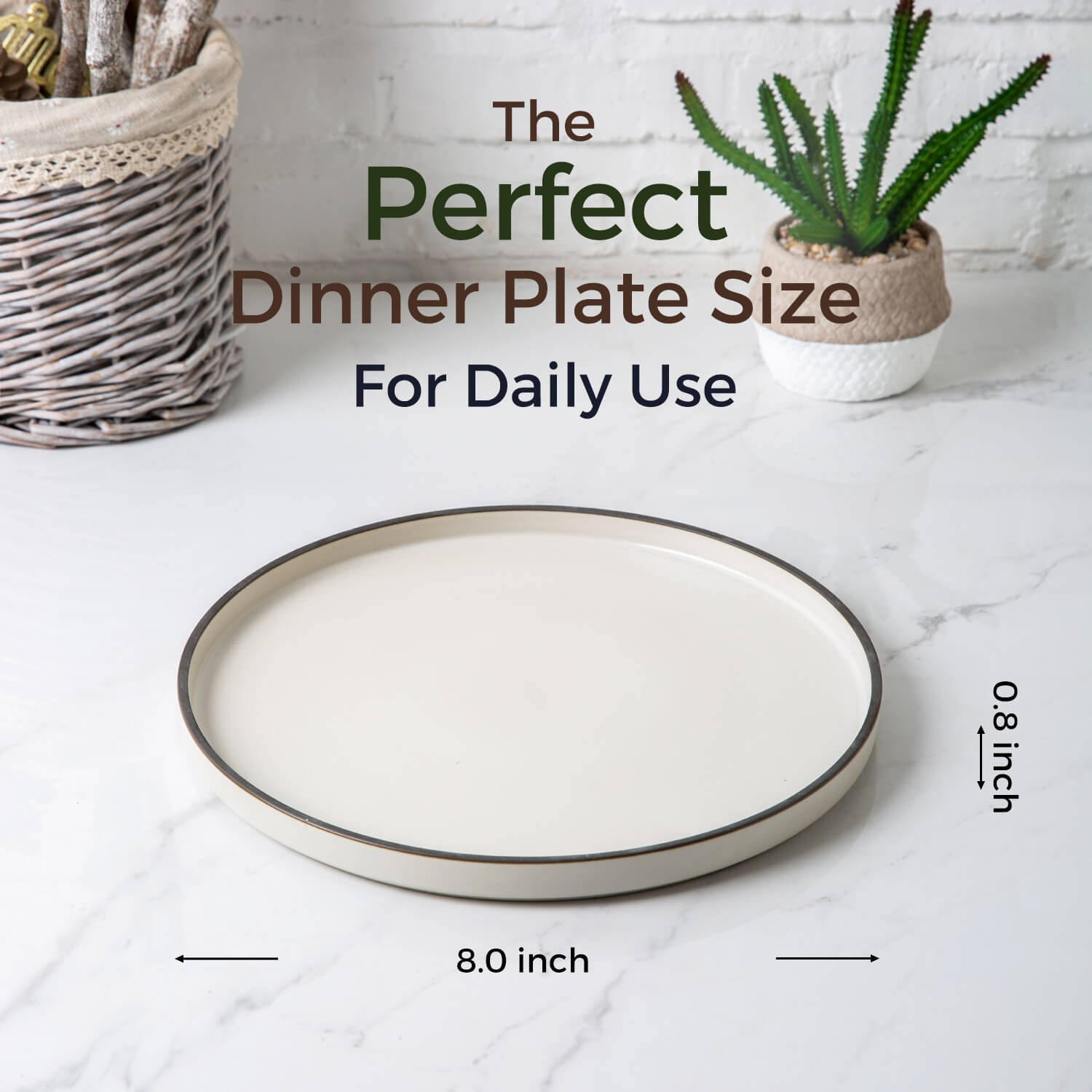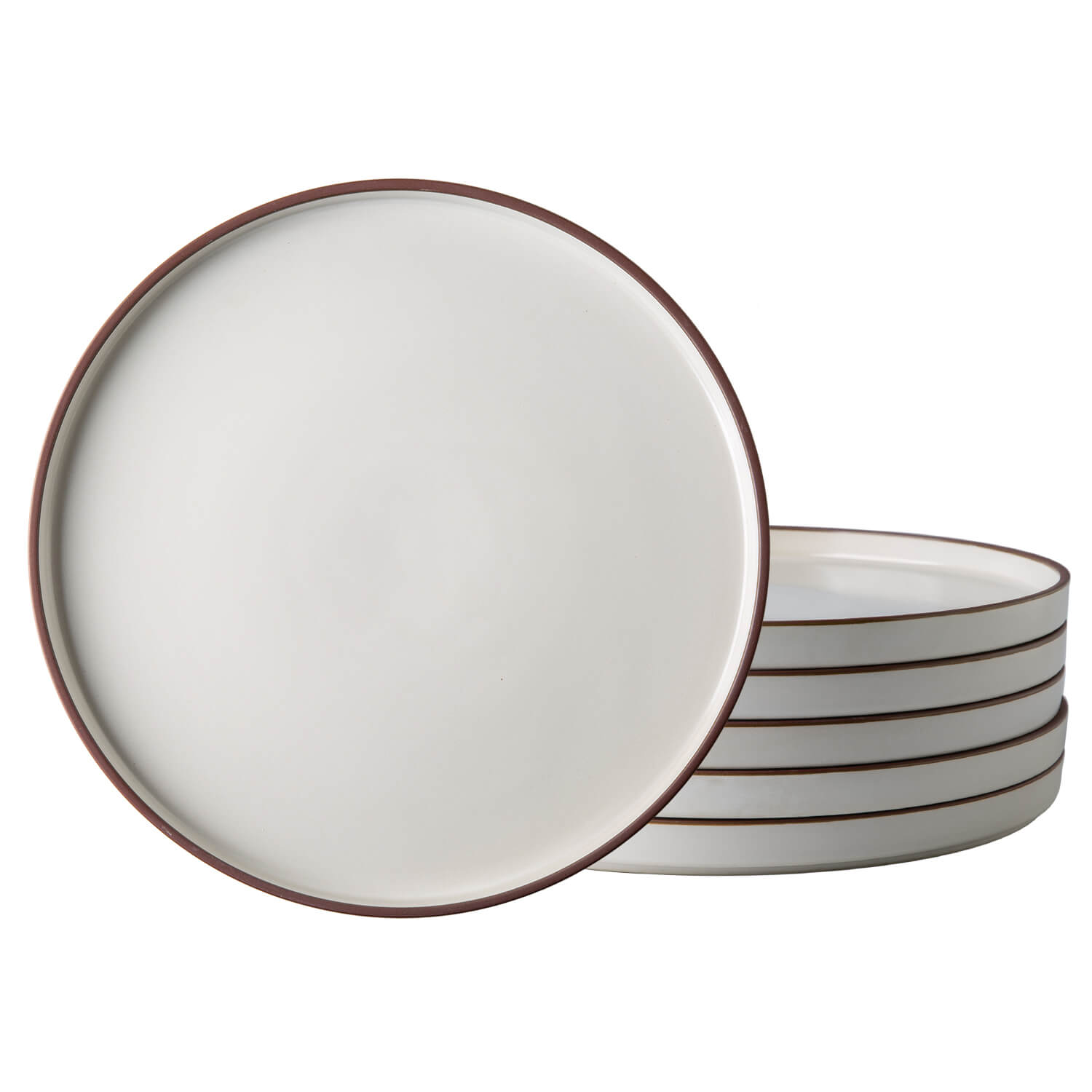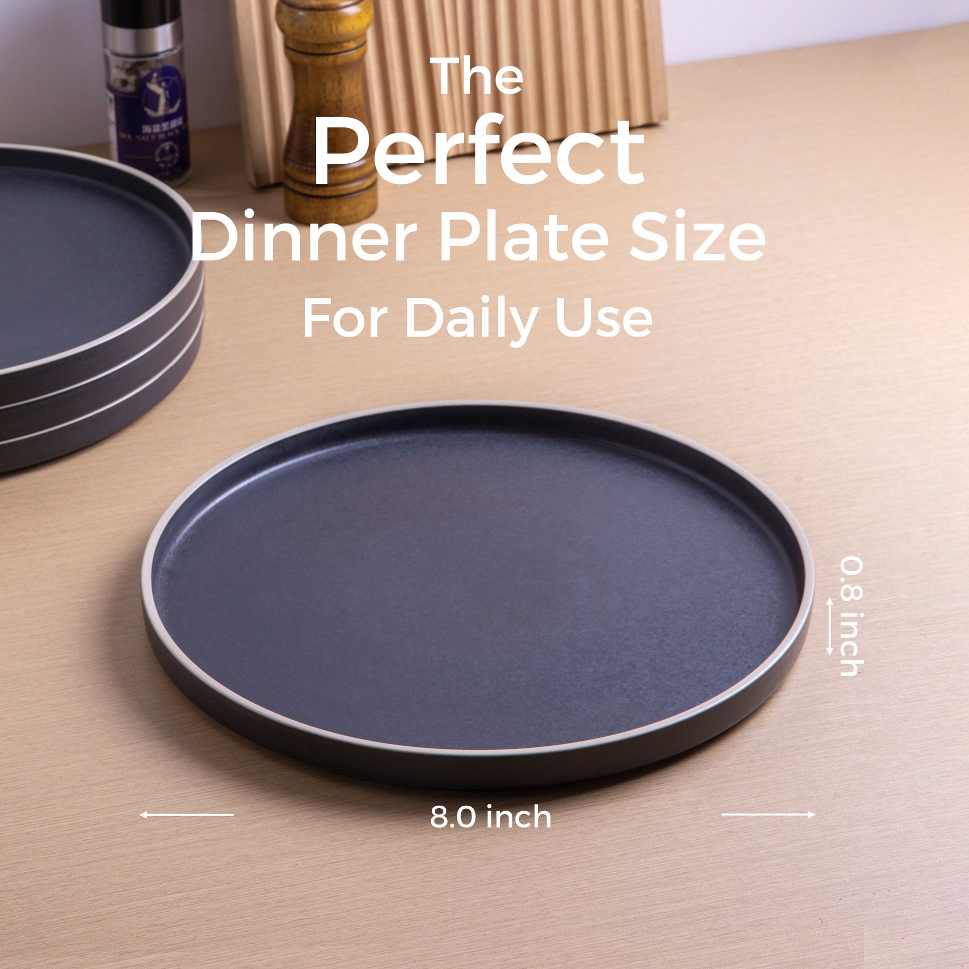 Ceramic Salad Plates 8.0Inch handmade Reactive Glaze Plates, Large Rustic Shape Dinnerware Dish Set for Kitchen, Microwave & Dishwasher Safe, Scratch Resistant black with brown rim,black with white rim,white with black rim,white with brown rim