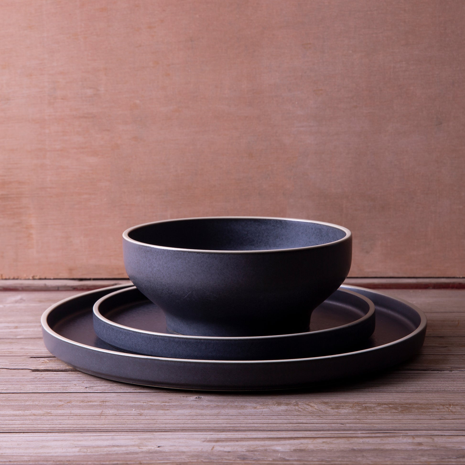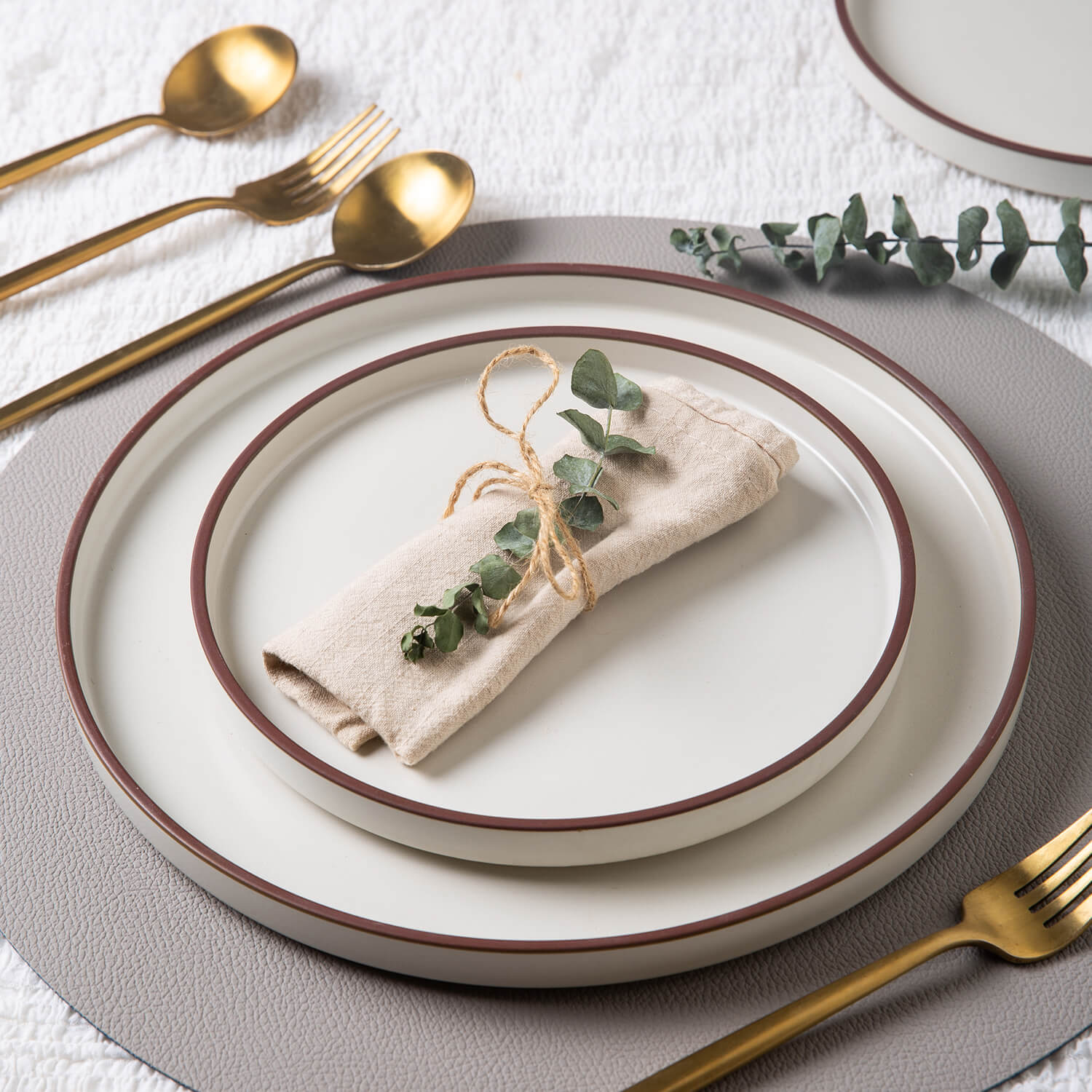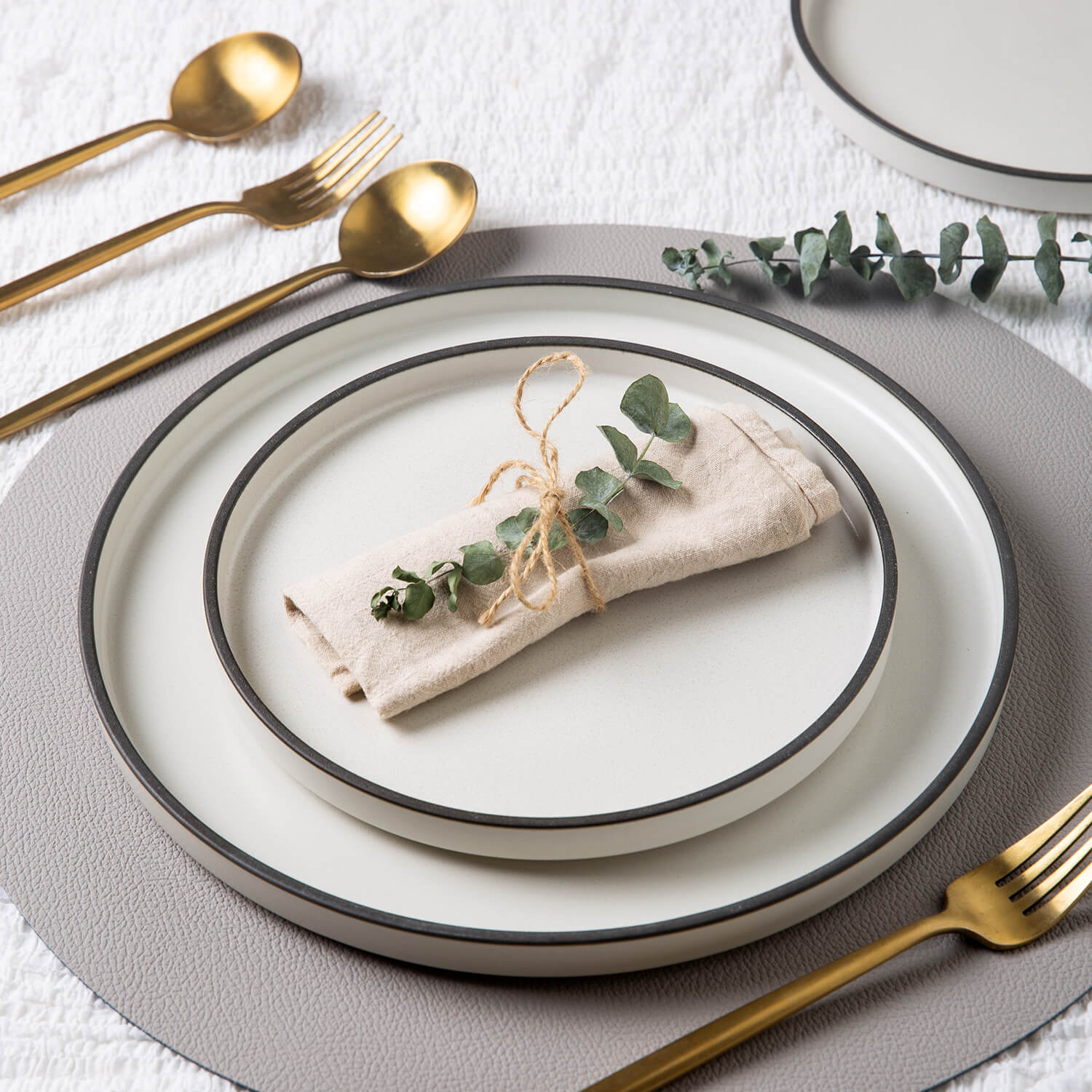 Ceramic Salad Plates 8.0Inch handmade Reactive Glaze Plates, Large Rustic Shape Dinnerware Dish Set for Kitchen, Microwave & Dishwasher Safe, Scratch Resistant black with brown rim,black with white rim,white with black rim,white with brown rim