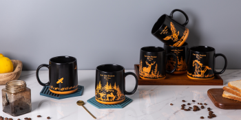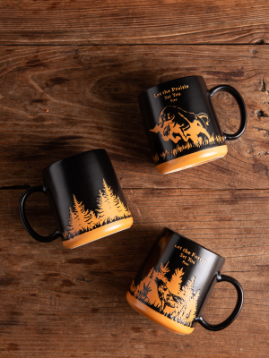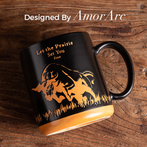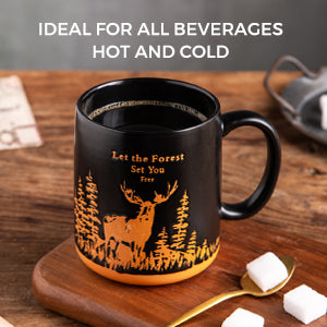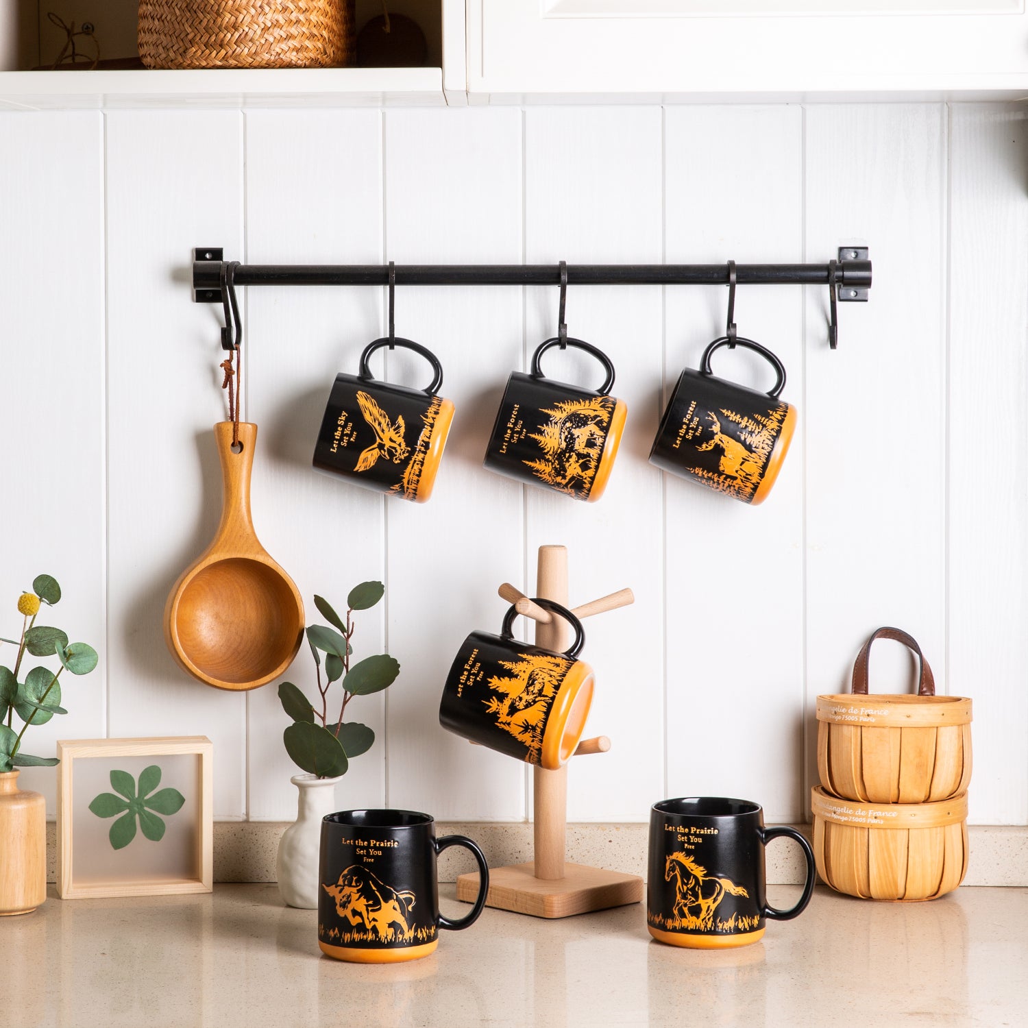 18oz Large Coffee Mugs Set of 6, Ceramic Coffee Mugs with Animal Wildlife Textured Patterns for Tea Latte Cocoa. Easy to Hold&Clean, Dishwasher&Microwave Safe, Matte Black