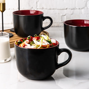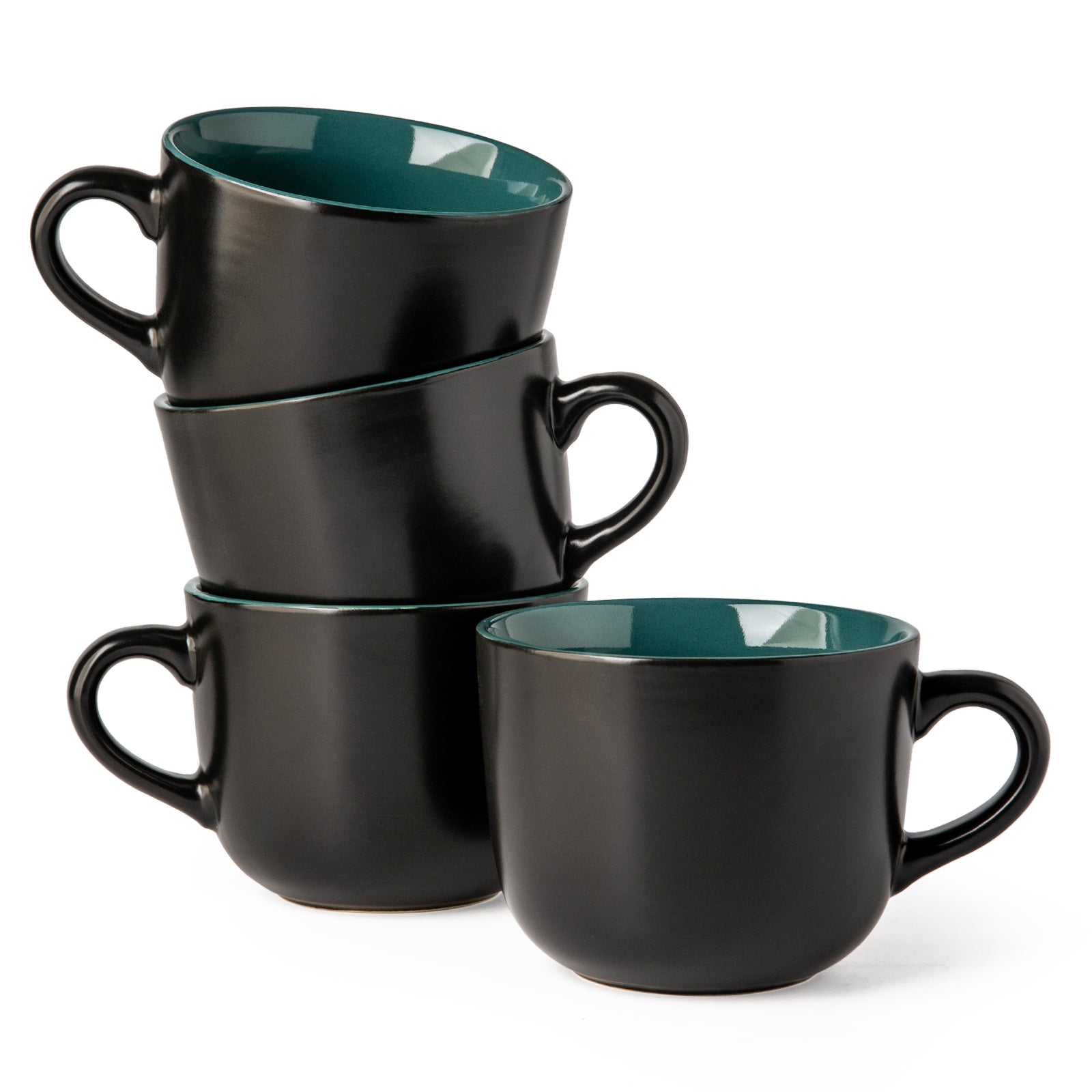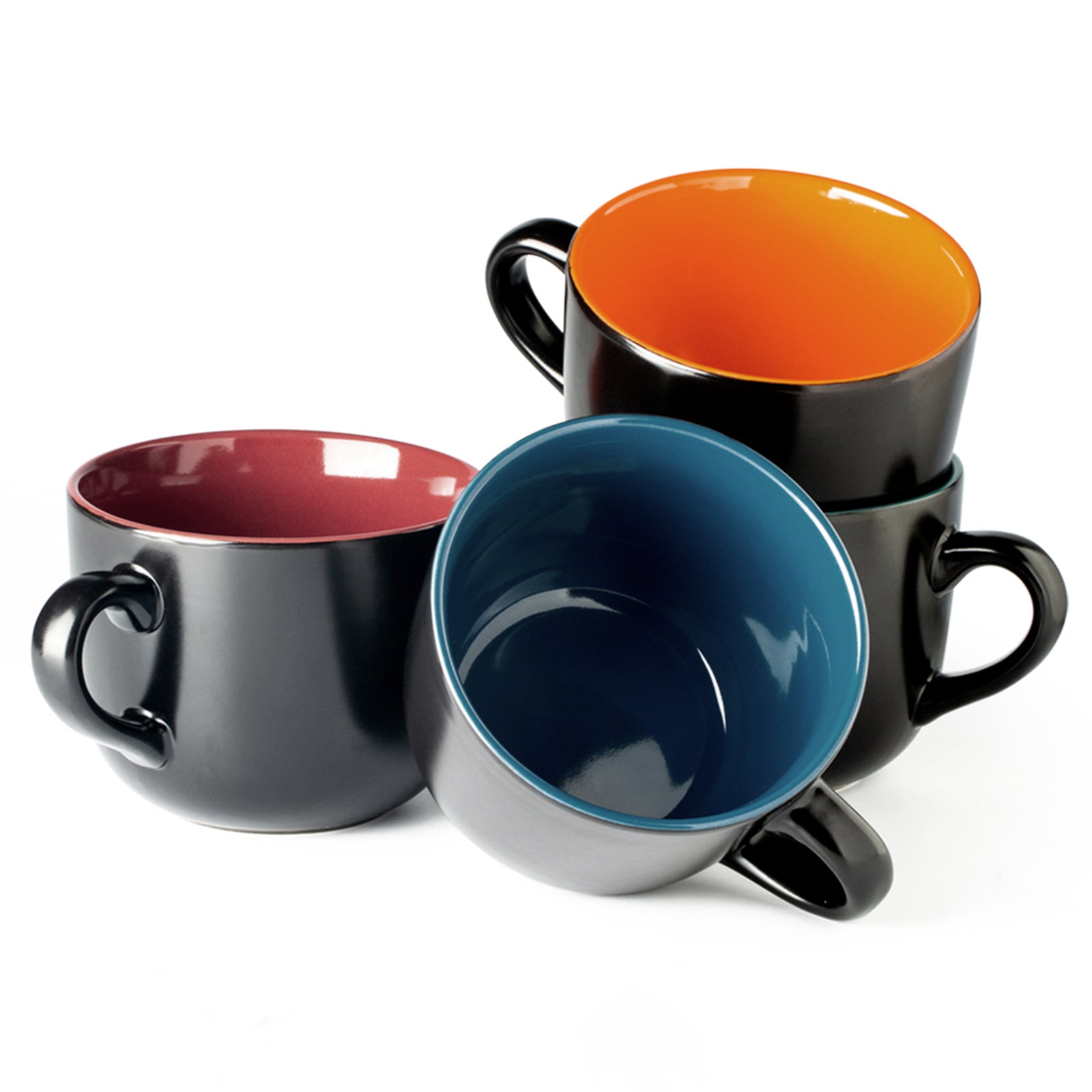 24 oz Soup Mugs with Handles, Jumbo Ceramic Bowls Mugs Set with handles for Coffee Cereal Cappuccino Snacks, Microwave&Dishwasher safe Soup Cups for Meal-Multicolor Black Blue Burgundy Green Orange White