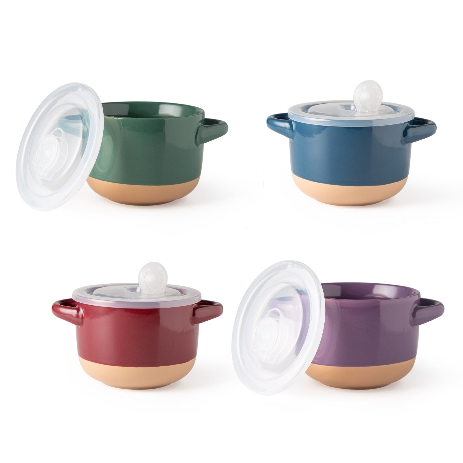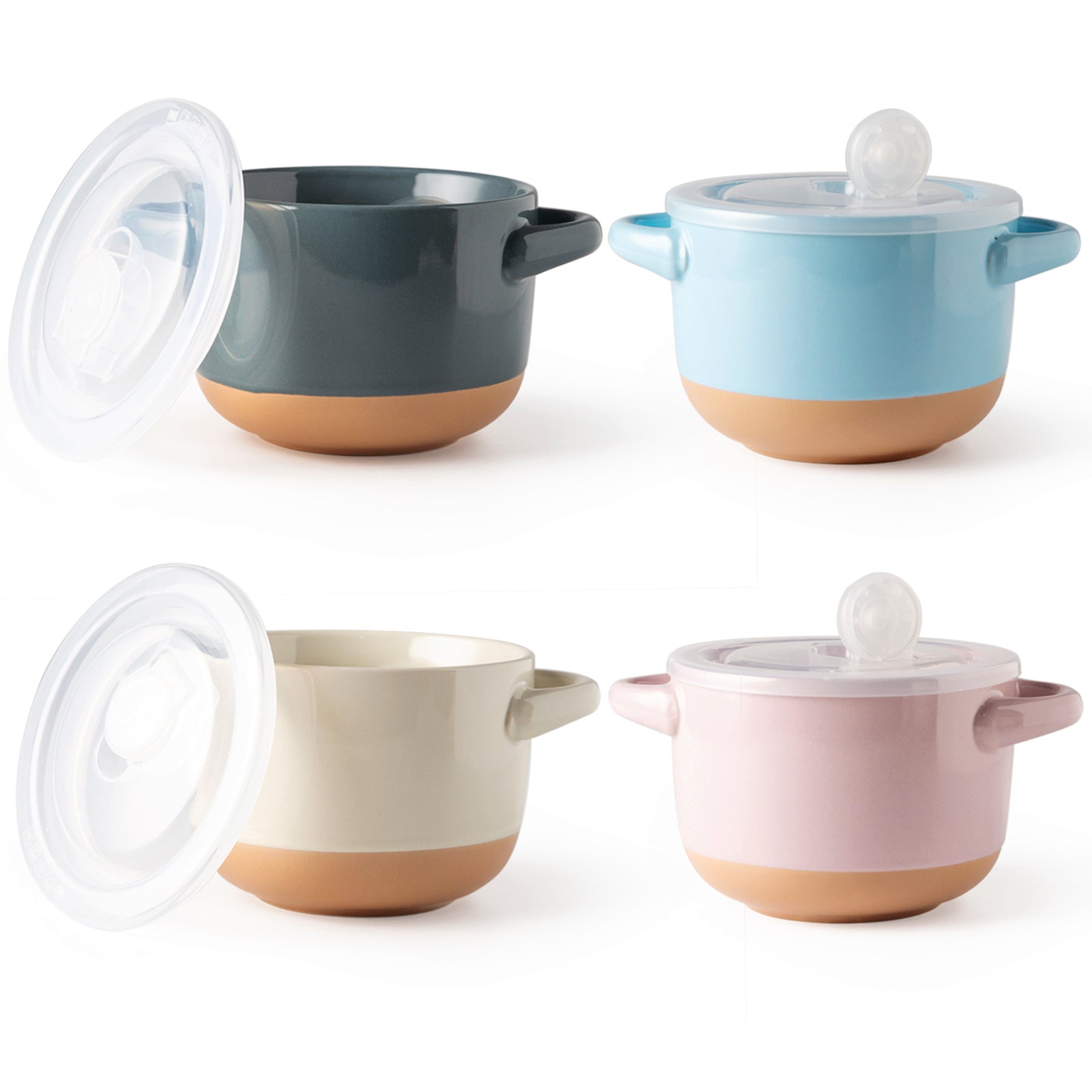 24 Ounces Soup Bowls with Large Handles and Lids, Stoneware Bowls Set of 4 for Soup,Cereal,Stew,Noodle,Colourful Ceramic Kitchen Bowls, Microwave&Dishwasher Safe, Multicolor