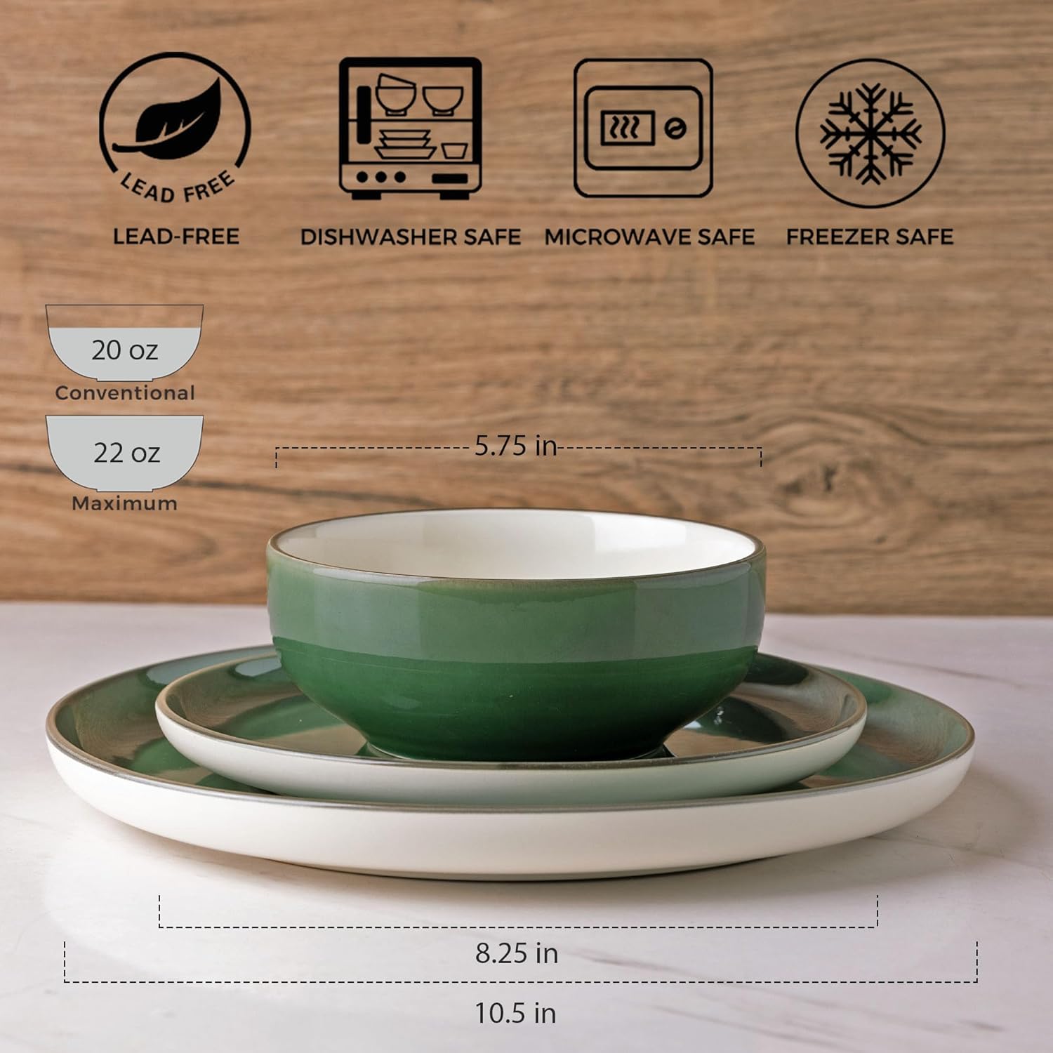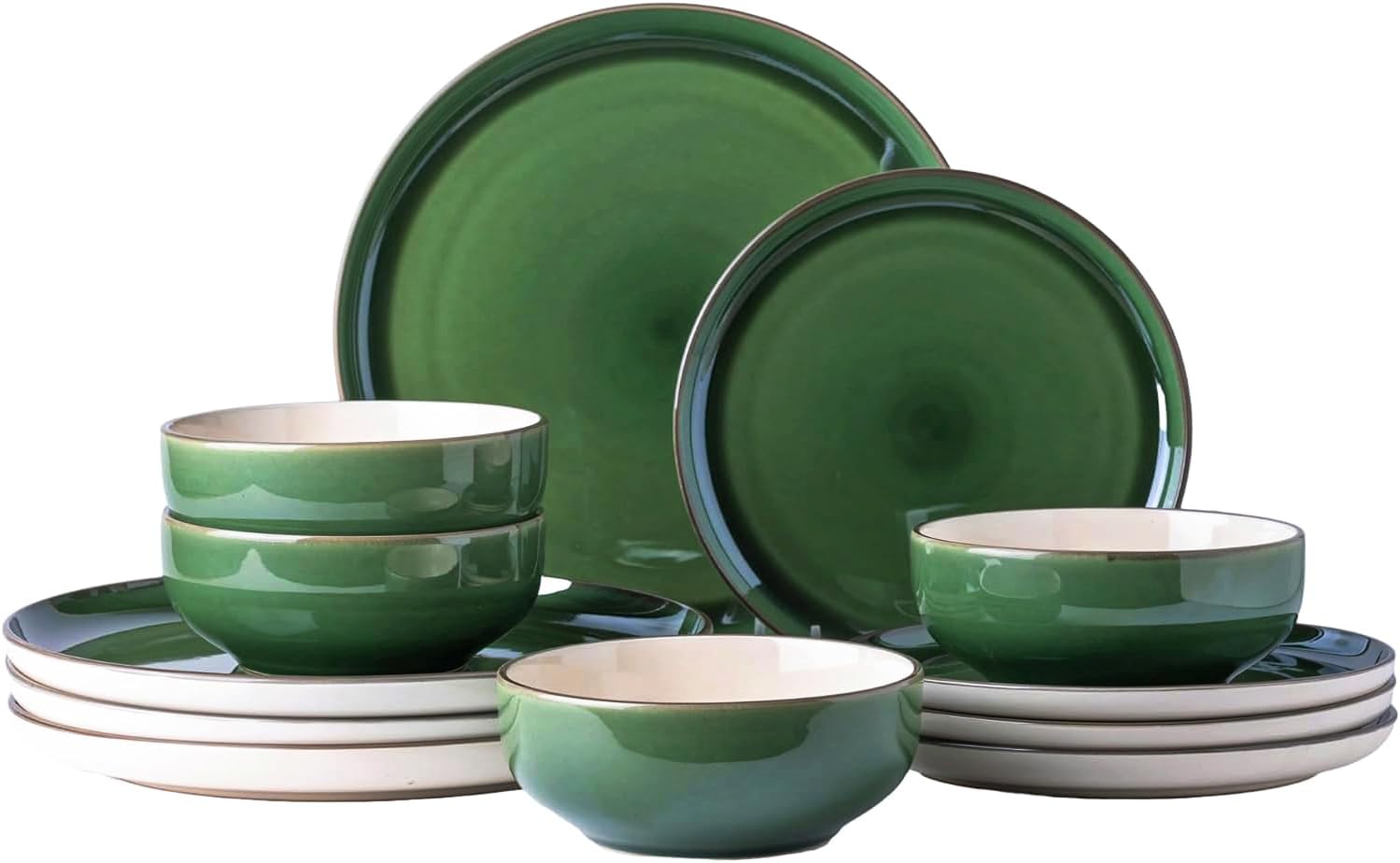 GBHOME Ceramic Dinnerware Sets, 12 Pieces Sapphire Blue Stoneware Dinnerware Set, Plates and Bowls Sets, Dishwasher & Microwave Safe | Service for 4