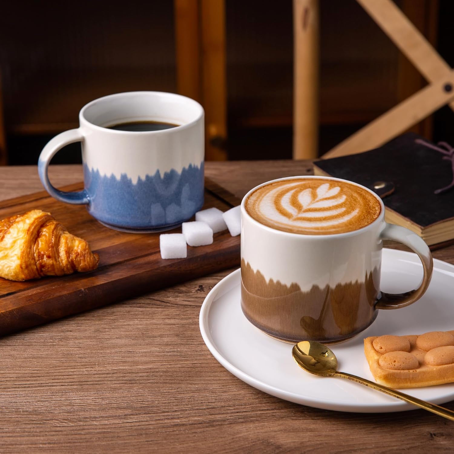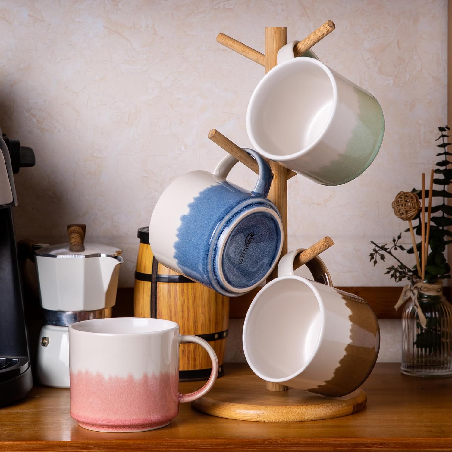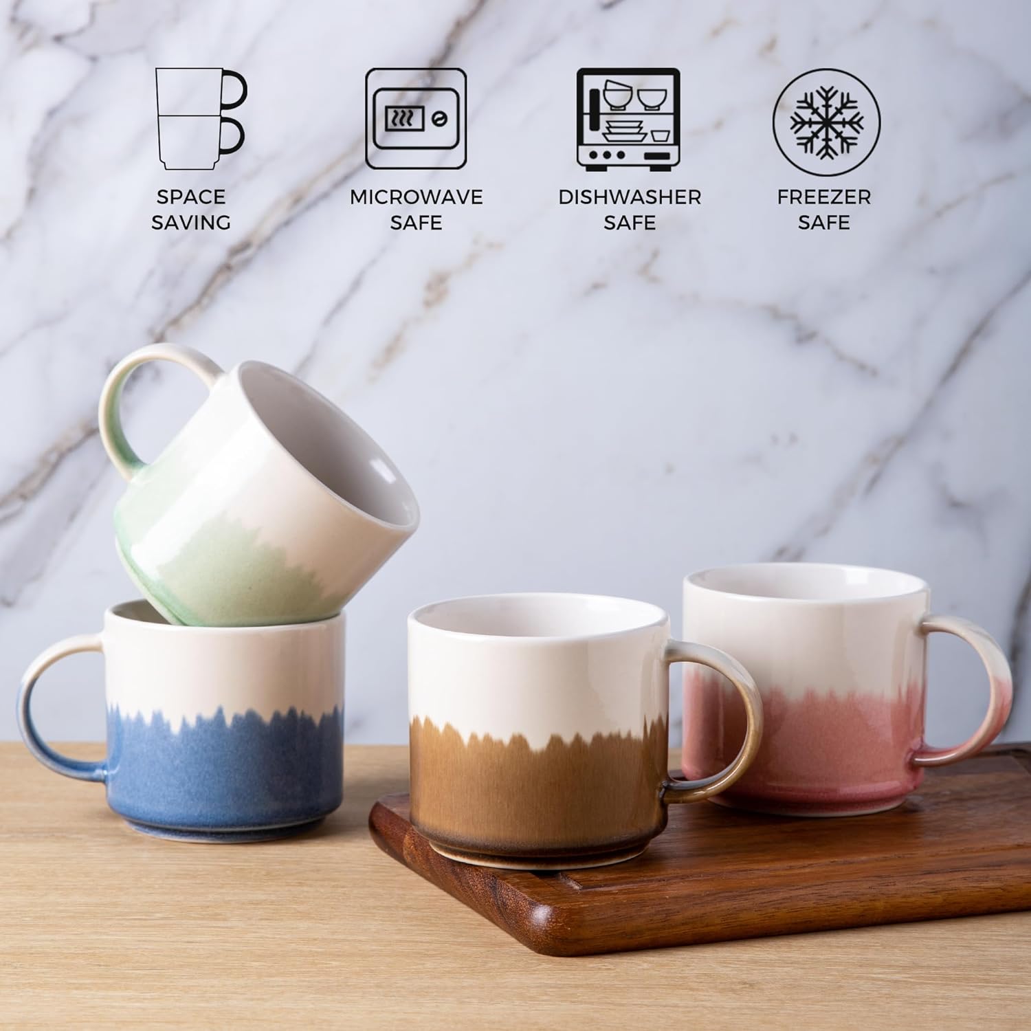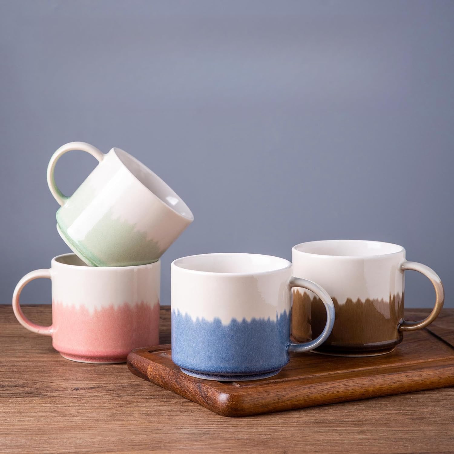 GBHOME 12OZ Stackable Coffee Mugs, Ceramic Coffee Mugs For Man,Woman,Dad,Mom, Modern Coffee Mugs Set of 4 for Latte/Cappuccino/Cocoa. Dishwasher & Microwave Safe, Multi-Color