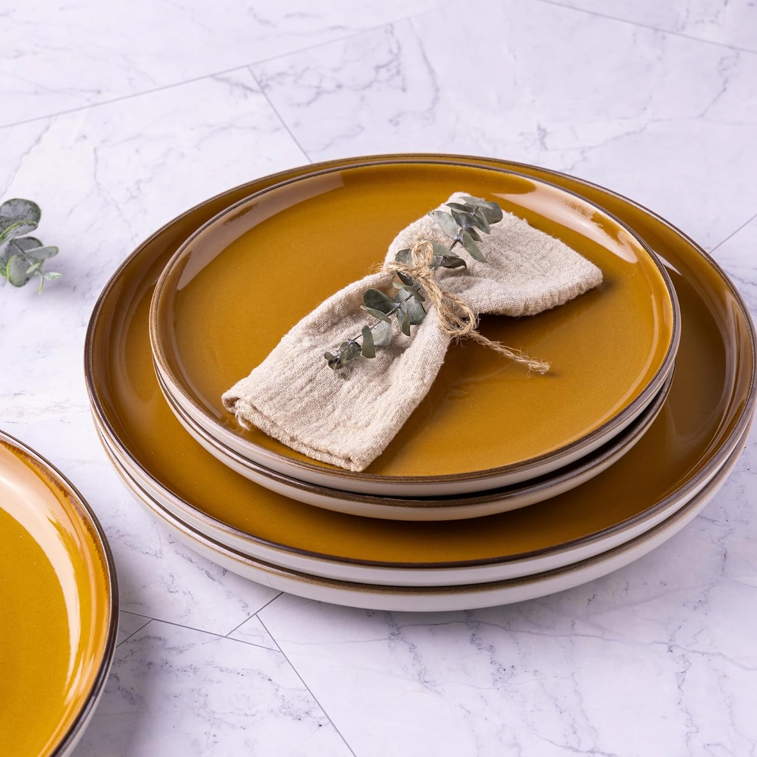 XQUDW073 Dinnerware Set White-Amber Yellow