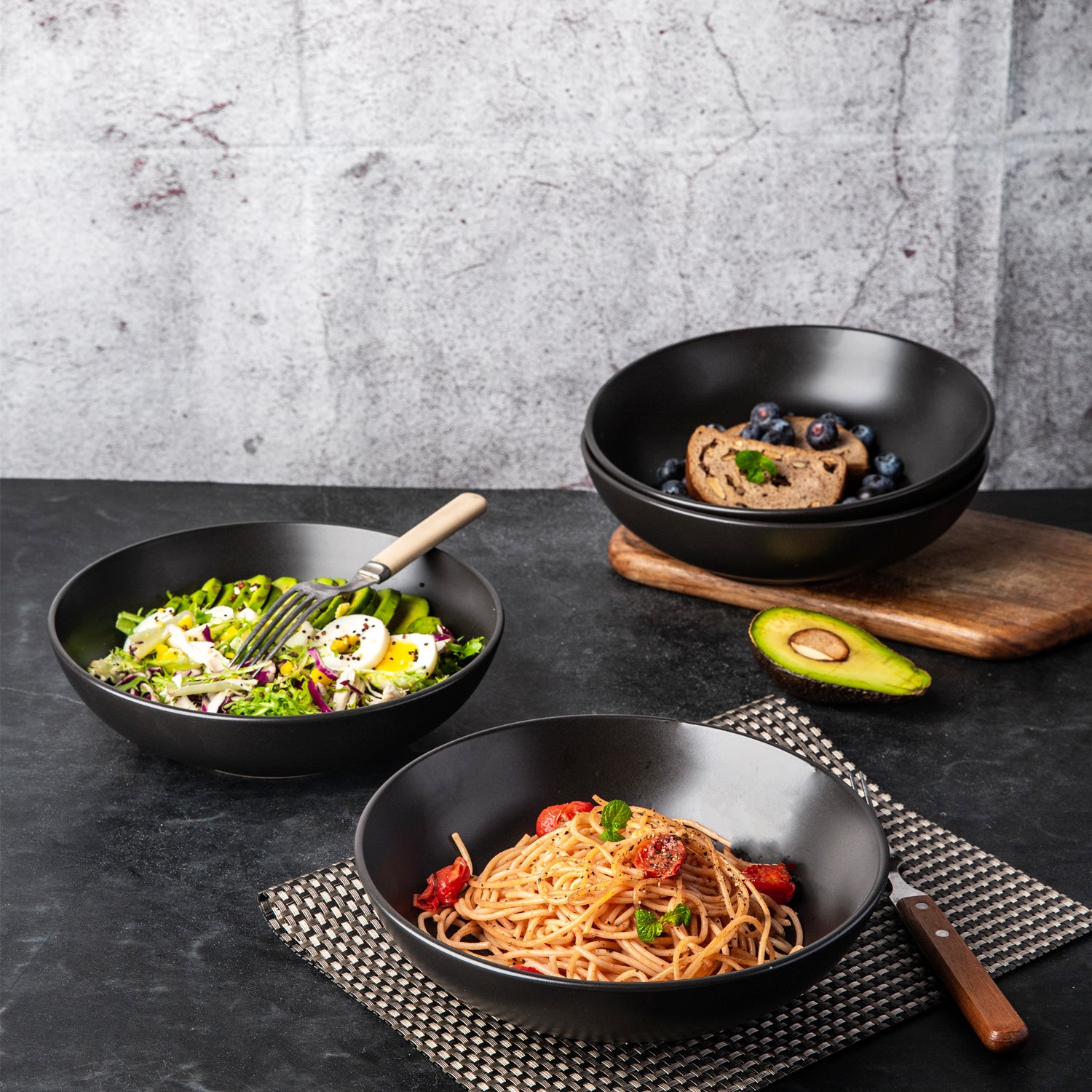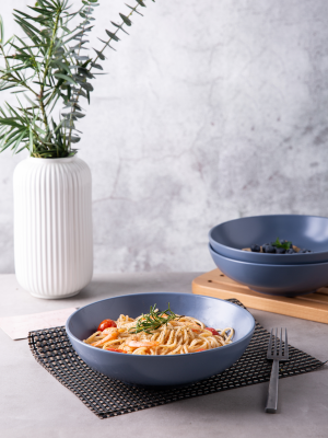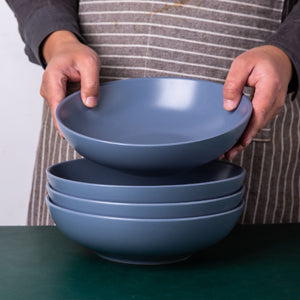 8.75'' Large Pasta Bowls, 42 ounce Stoneware Salad Serving Bowls Set of 4 for Kitchen, Chip-resistant Deep Bowls Set for Pasta Salad Fruit Soup, Microwave Safe-Matte White, Black, Blue, Gray