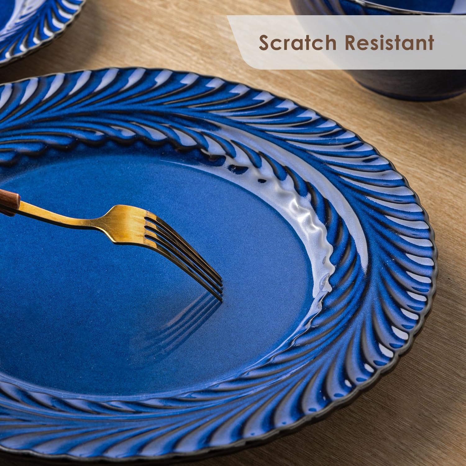 GBHOME Stoneware Dinnerware Sets, Reactive Ceramic Plates and Bowls Sets, Chip and Scratch Resistant Dishes| Dishwasher & Microwave Safe | Service for 4