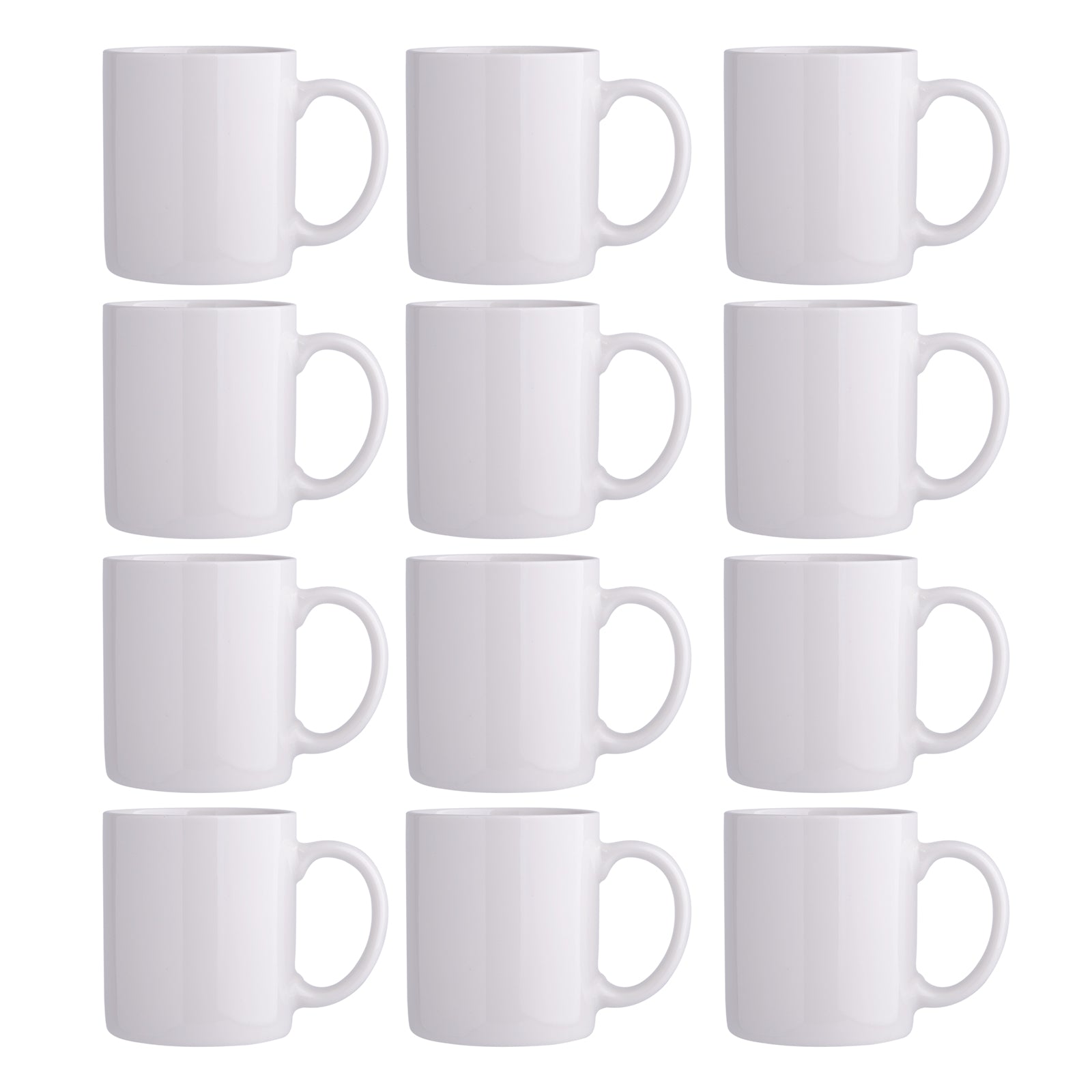 Sublimation Mugs Blank, 12oz White Ceramic Sublimation Cups, Bulk Mugs for Coffee, Milk, Latte, Hot Cocoa, Set of 6
