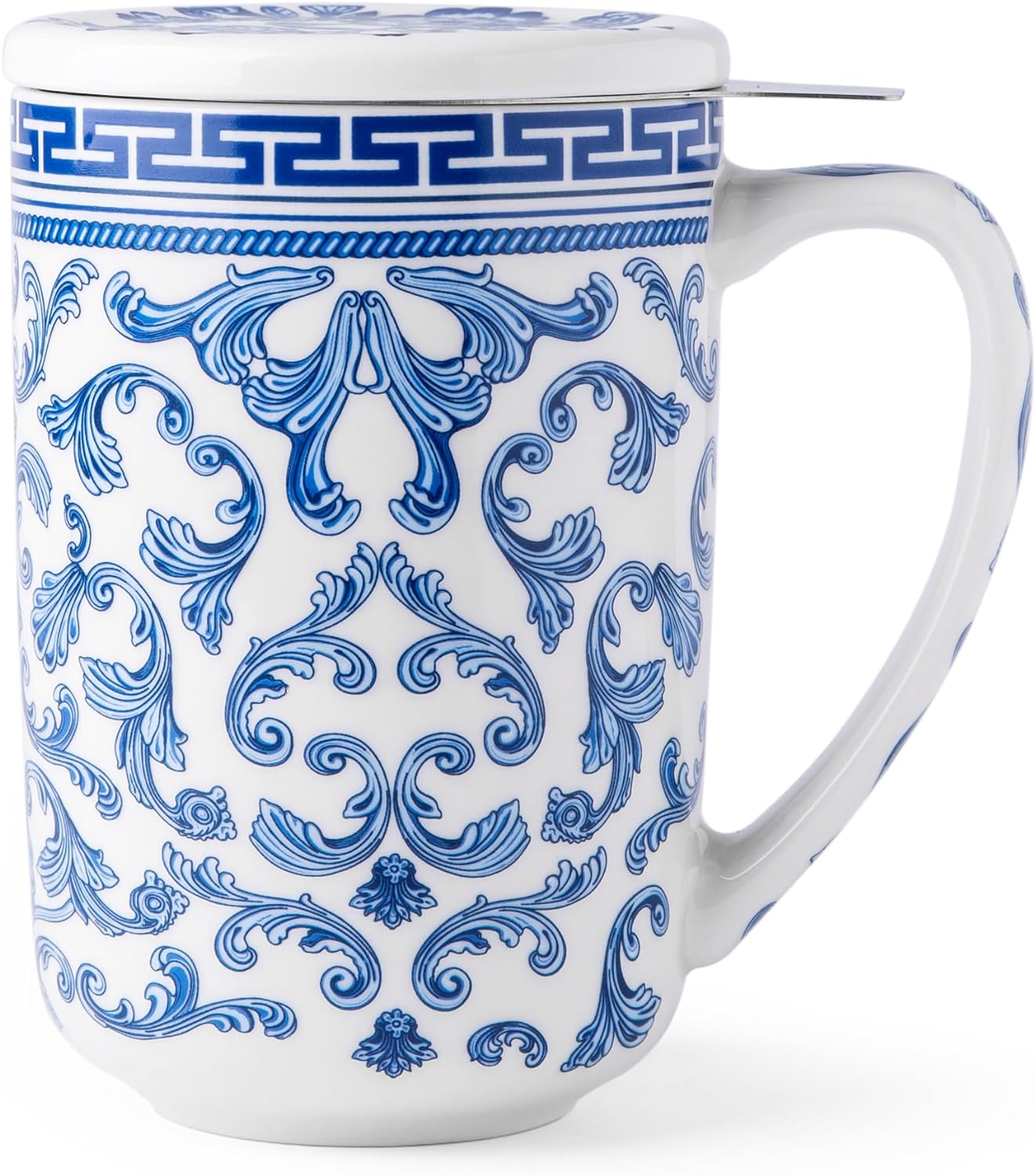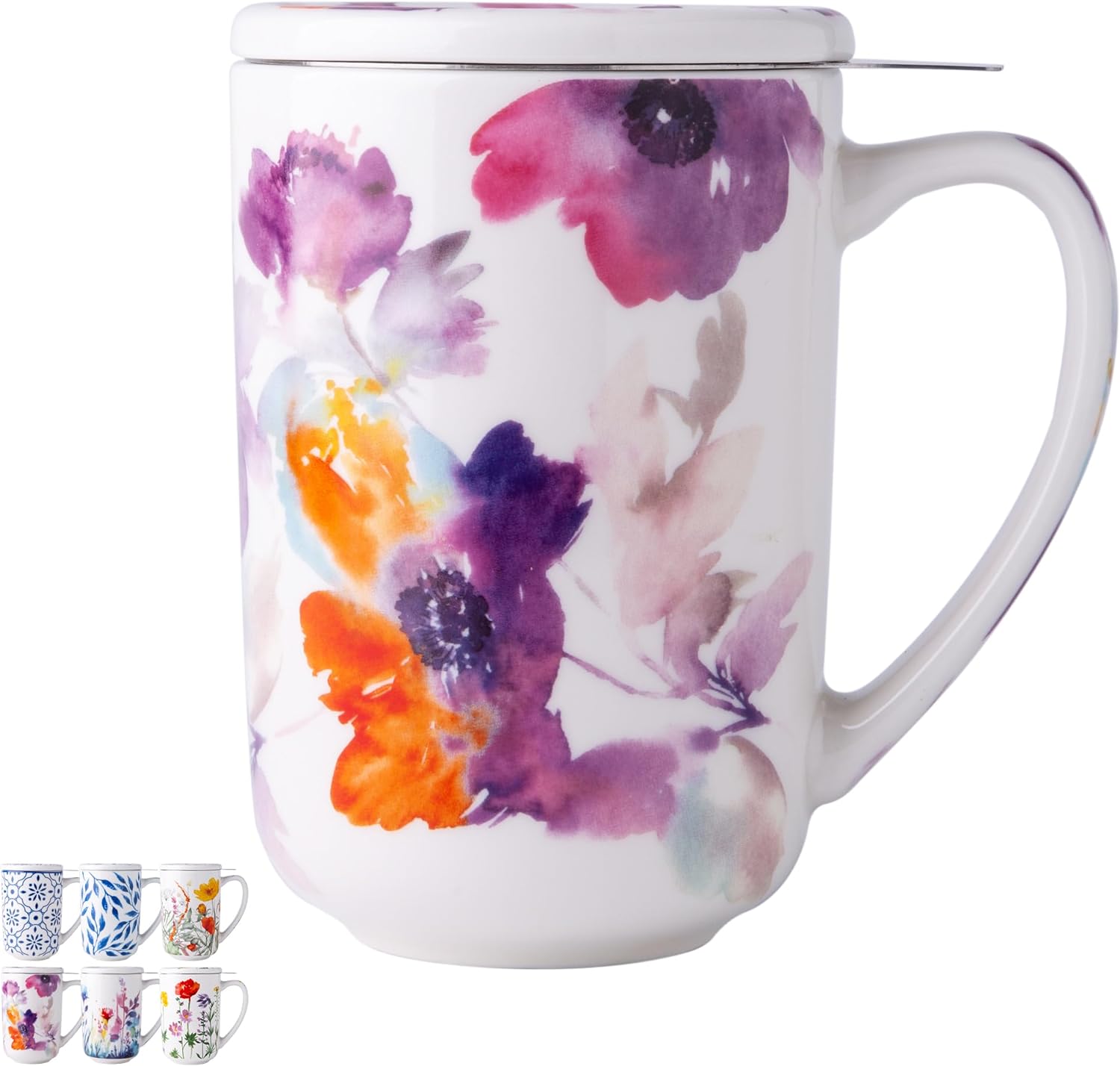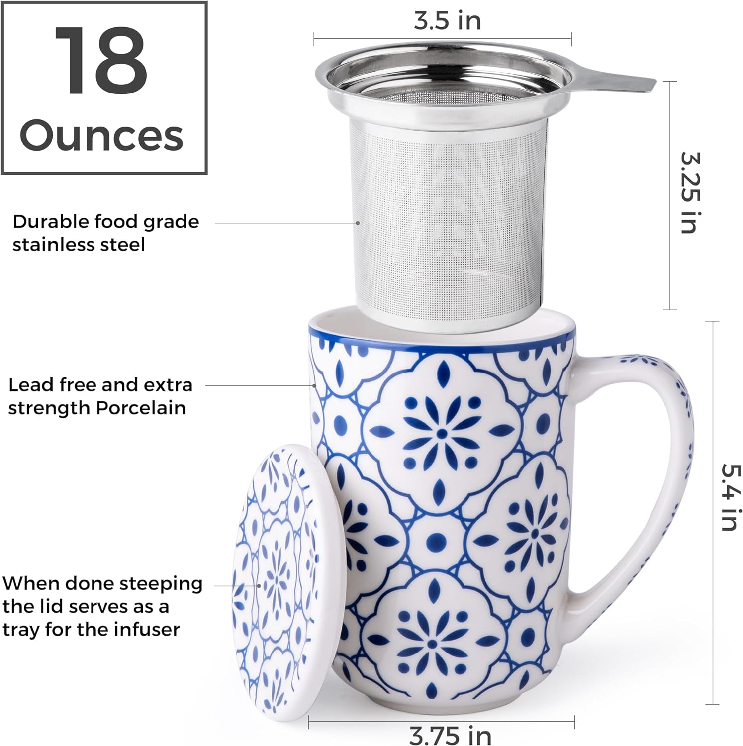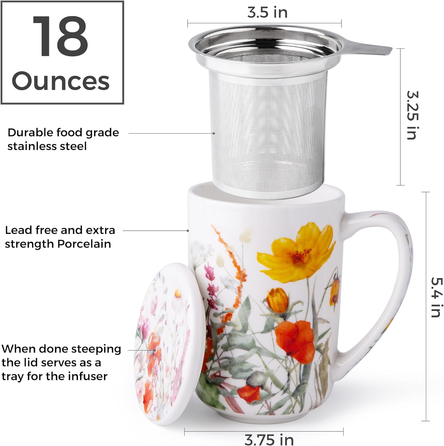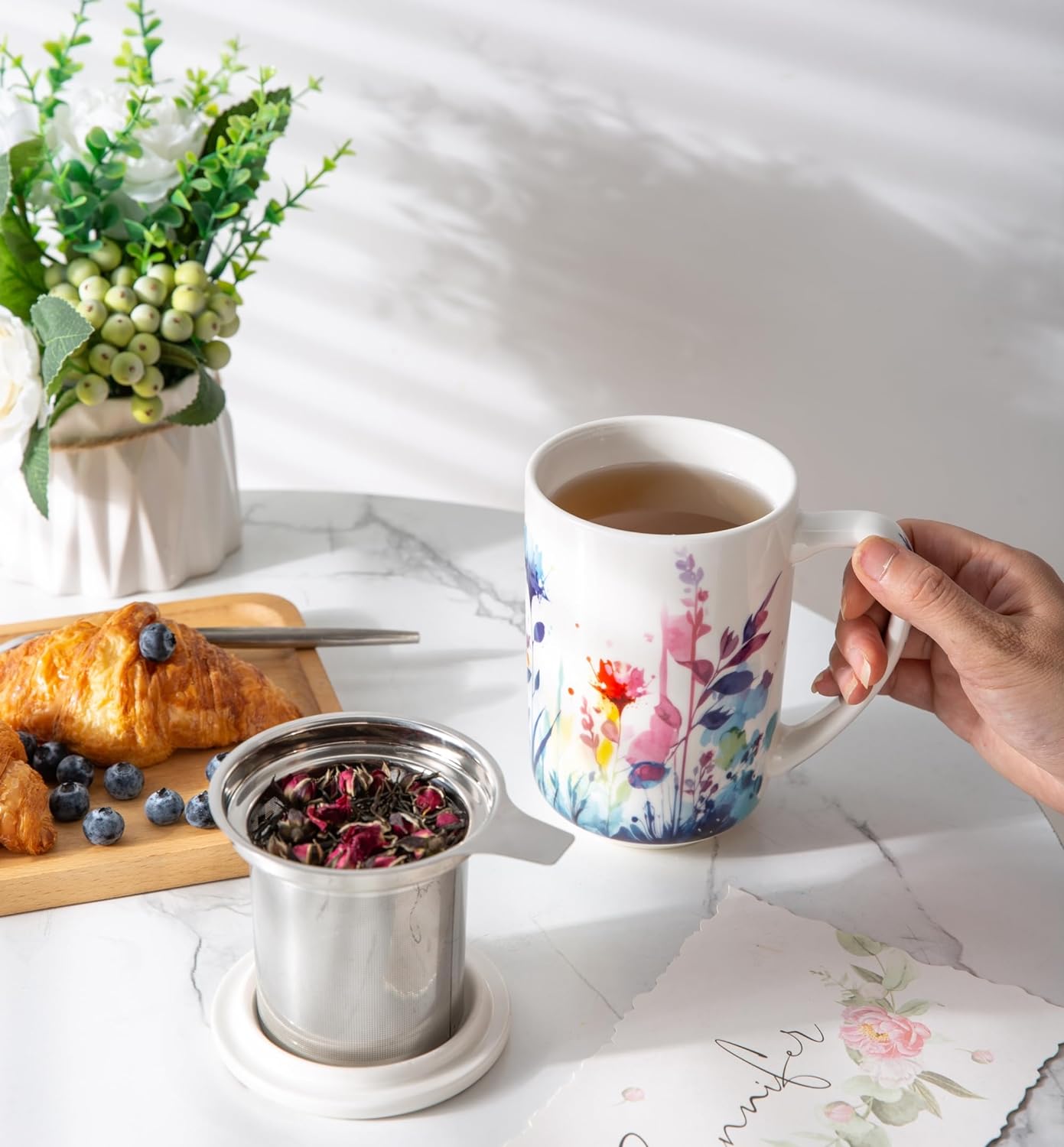 AmorArc Porcelain Tea Mug with Infuser and Lids, 18 Oz Tea Cup Strainer with Tea Bag Holder for Loose Leaf Tea, Tea Steeping Coffee Mug for House-warming Wedding Birthday Gift